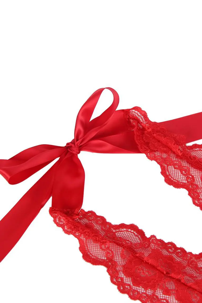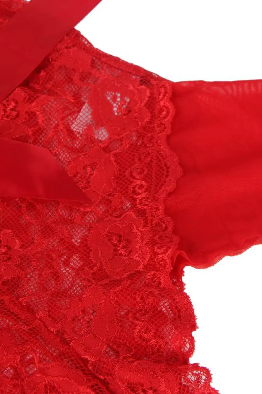 Κόκκινο halter teddy με δαντέλα και ζώνη