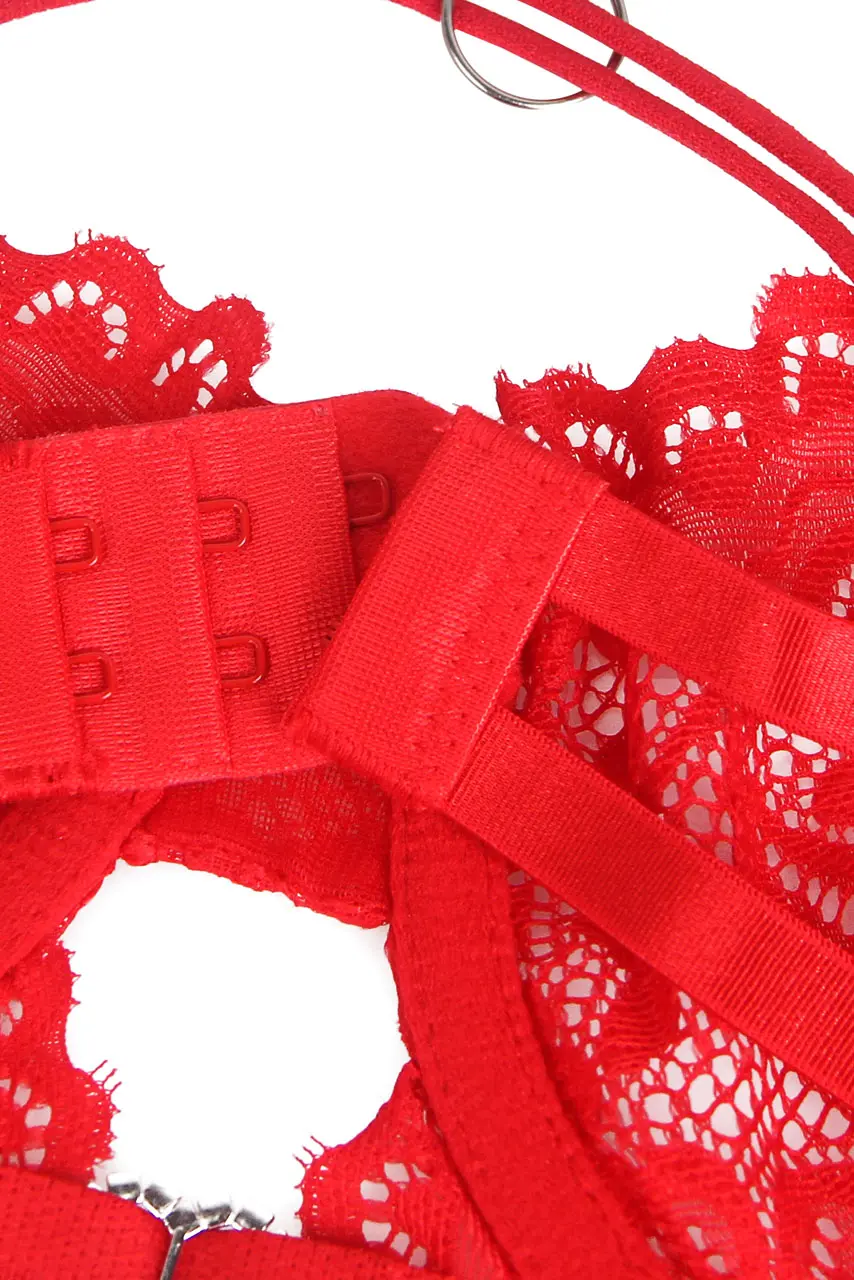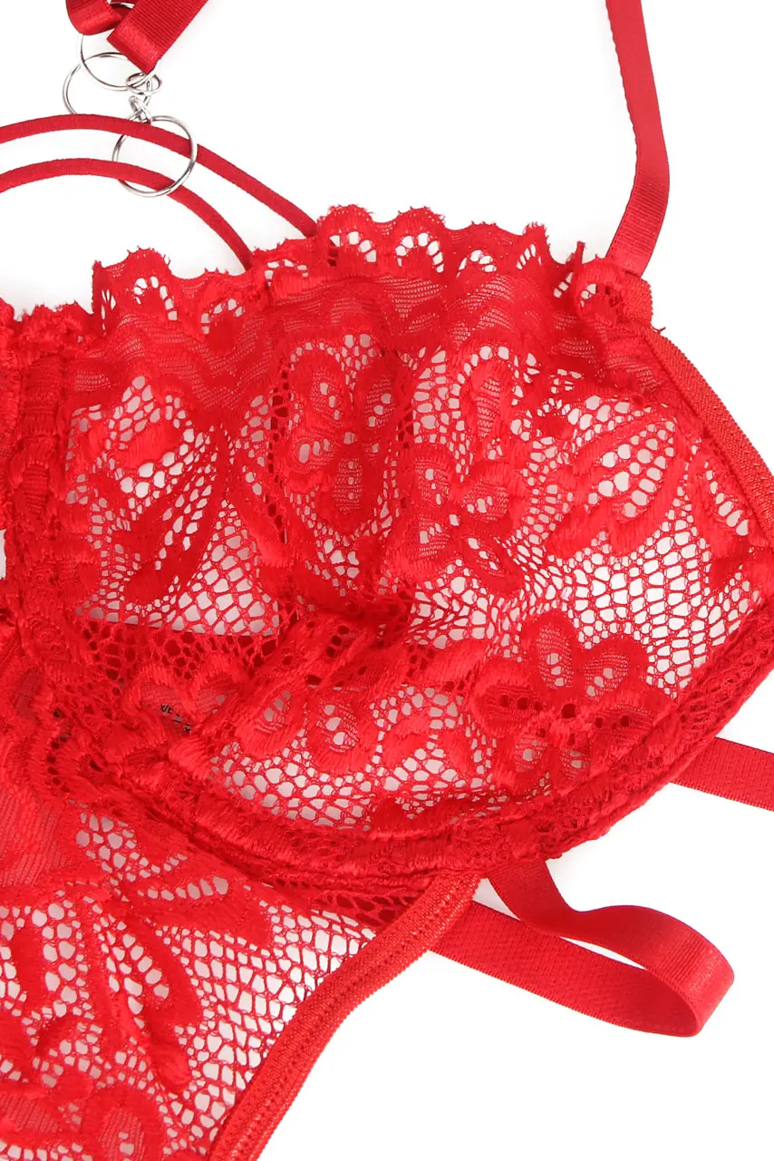 Πάρε θέση στο catwalk της αποπλάνησης με αυτό το κόκκινο σετ lingerie, που δημιουργήθηκε για να σε κάνει να νιώθεις ακαταμάχητη. Η έντονη κόκκινη απόχρωση εκπέμπει πάθος, ενώ η δαντέλα με floral μοτίβα και τα στρας σε σχήμα καρδιάς προσθέτουν sparkle και φλερτ.