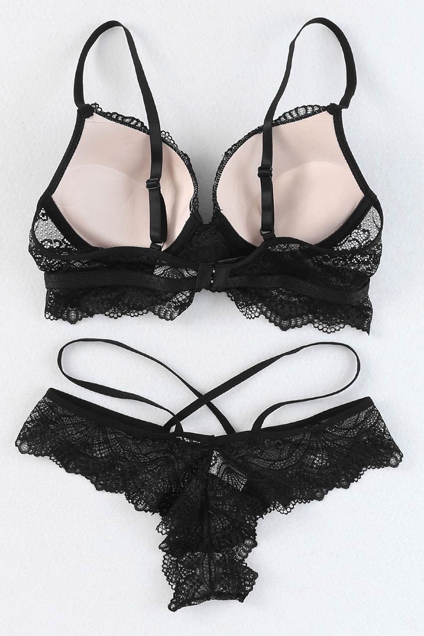 Μαύρο σετάκι με criss cross strappy σλιπ, σουτιέν με lift-up design και all over δαντέλα με ιδιαίτερο μοτίβο και vintage look.