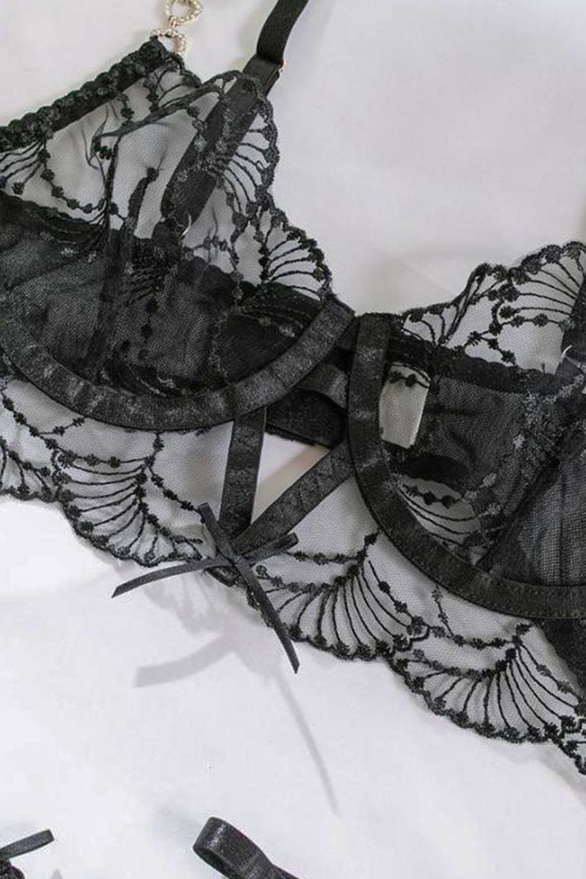 Lace σετ εσωρούχων με ζαρτιέρες σε μαύρο Lace σετ εσωρούχων με ζαρτιέρες σε μαύρο