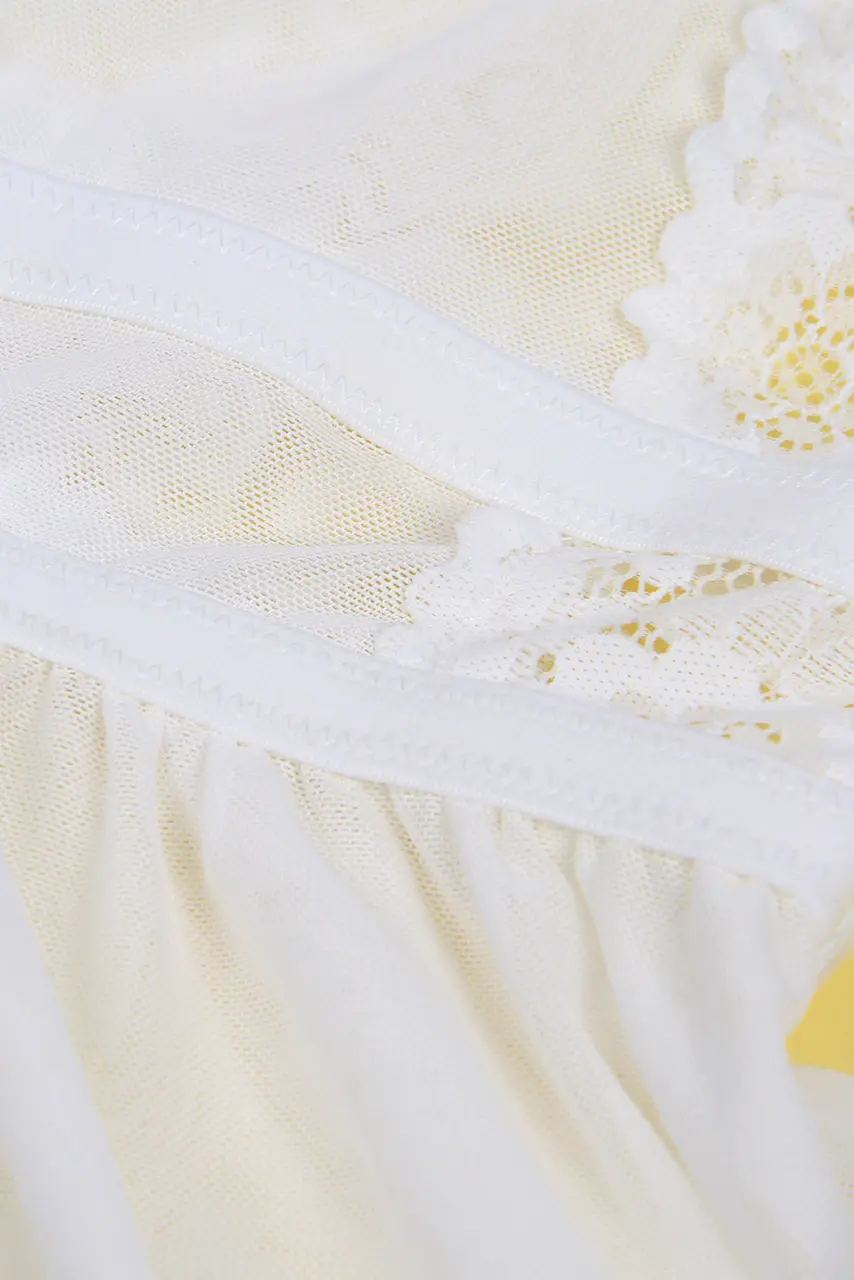 Στην πλάτη, το lace-up δέσιμο λειτουργεί ως αισθησιακή λεπτομέρεια που αναδεικνύει τη μέση, ενώ οι ρυθμιζόμενες ζαρτιέρες προσδίδουν αβίαστα θηλυκή ένταση.