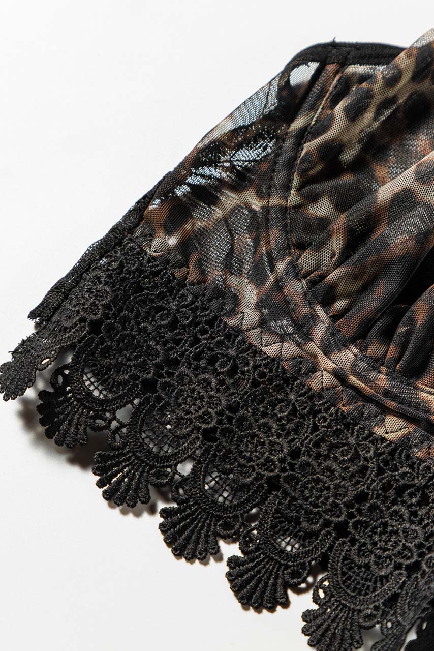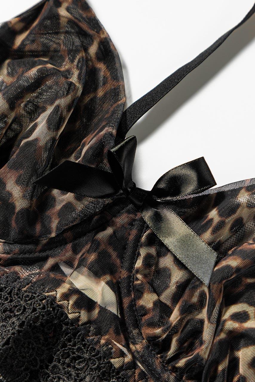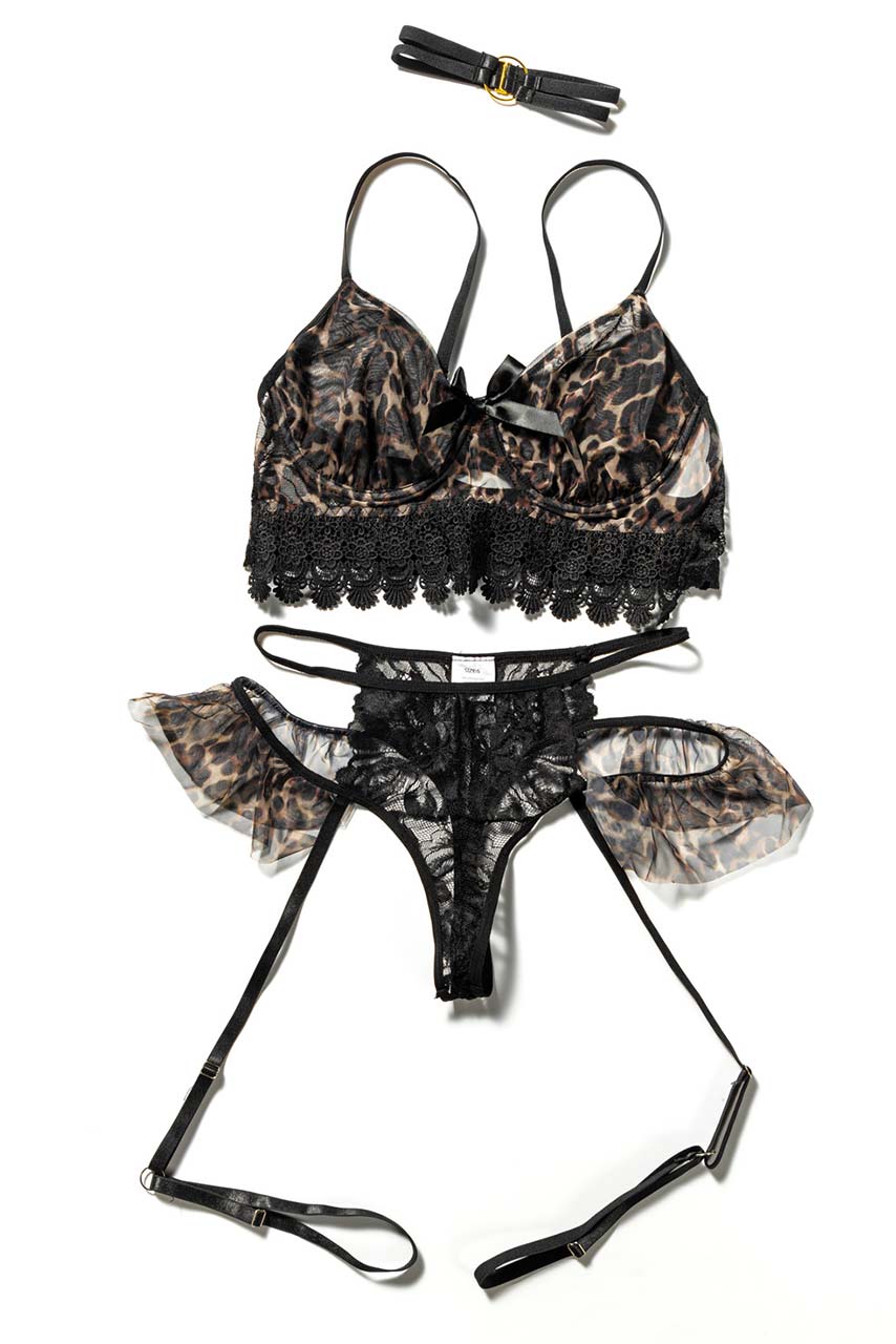 Το απόλυτο leopard print lingerie σετάκι για ιδιαίτερες στιγμές, ημιδιάφανο με bralette top με μαύρη δαντέλα, ασορτί ultra high leg string σλιπάκι και strappy choker που ολοκληρώνει το style. Το σλιπάκι του έχει δαντέλα, straps, ενσωματωμένες ζαρτιέρες και ανεπανάληπτα animal print βολάν. Ανακάλυψε το πιο σέξι και ιδιαίτερο σετ underwear με ζαρτιέρες και ρυθμιζόμενα κορδόνια.