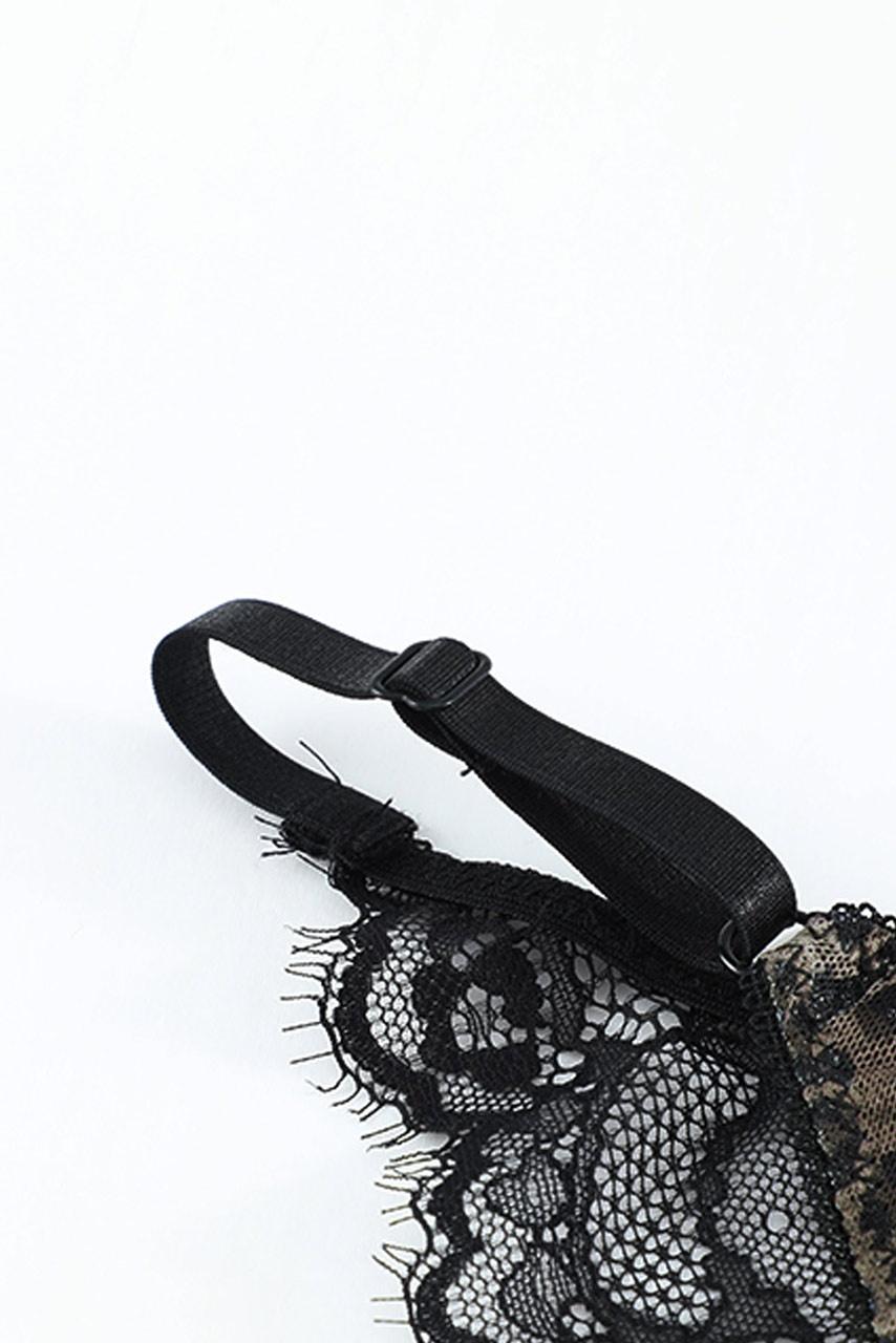 Σκούρο ημιδιάφανο leopard print σετ σε αποχρώσεις του γκρι με bralette top με μαύρη δαντέλα και ασορτί string σλιπάκι σε animal print με straps που προσαρμόζονται.