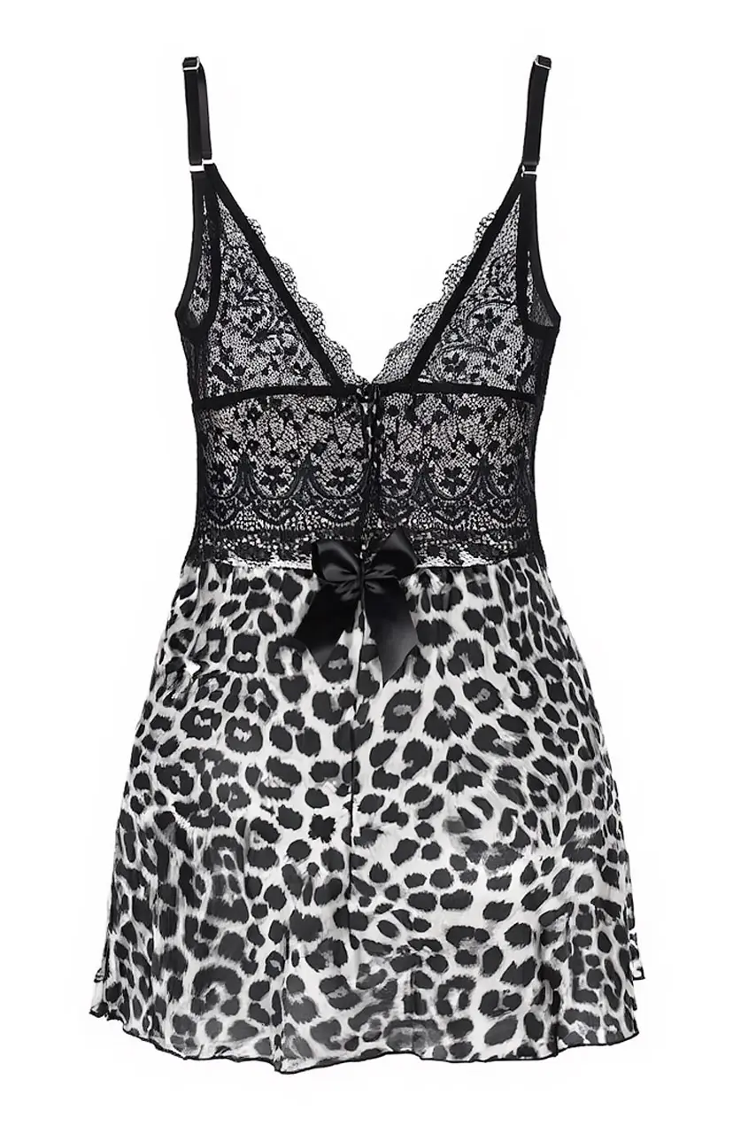 Leopard babydoll με v λαιμόκοψη και δαντέλα σε γκρι Leopard babydoll με v λαιμόκοψη και δαντέλα σε γκρι