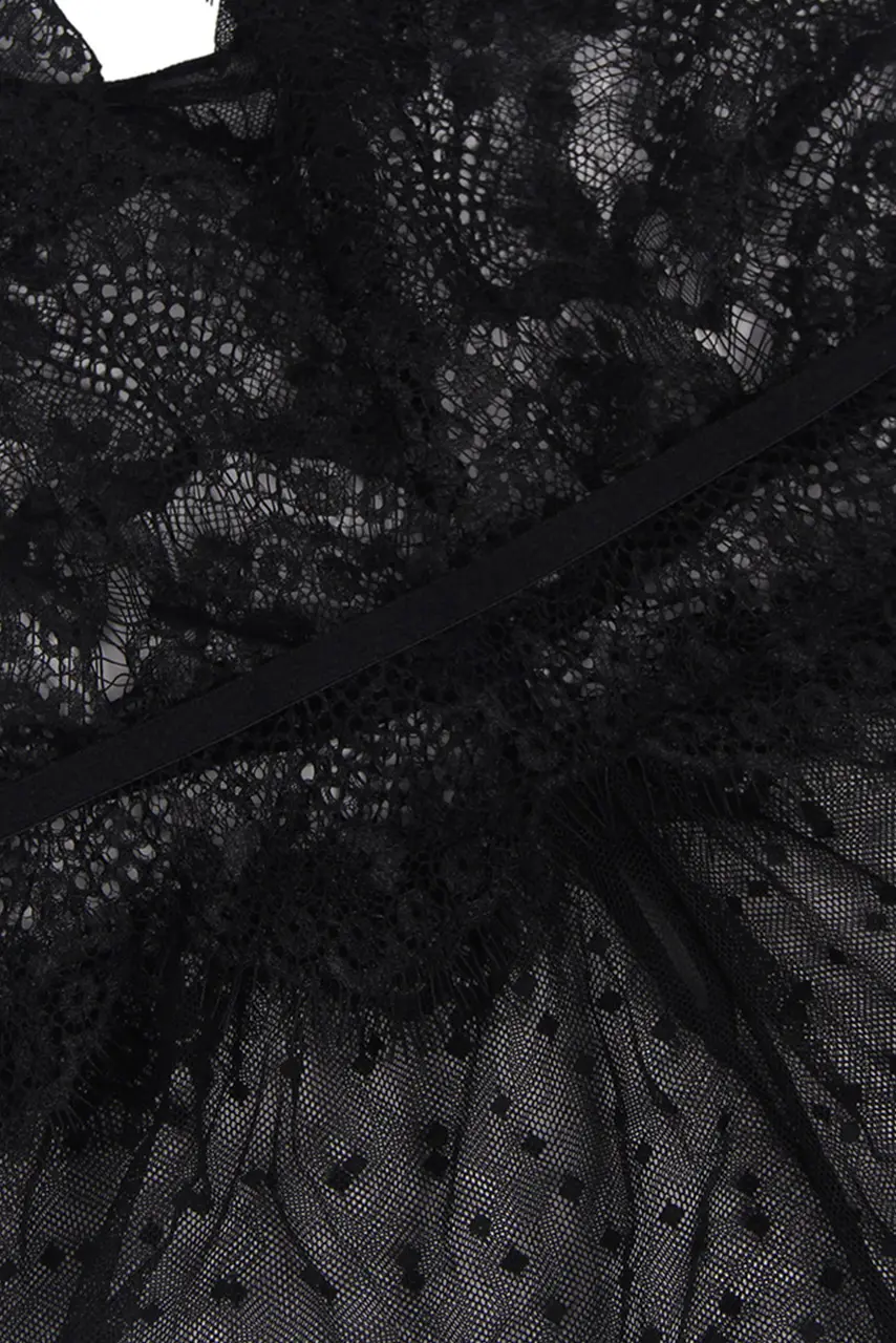 Το μαύρο δαντελένιο teddy με βαθύ V είναι το απόλυτο κομμάτι για εκείνες τις βραδιές που θες να νιώσεις σέξι, δυναμική και ανεπιτήδευτα θηλυκή. Η διακριτική πουά διαφάνεια αγκαλιάζει το σώμα, ενώ οι floral δαντελένιες λεπτομέρειες στο μπούστο απογειώνουν το ρομαντικό allure.