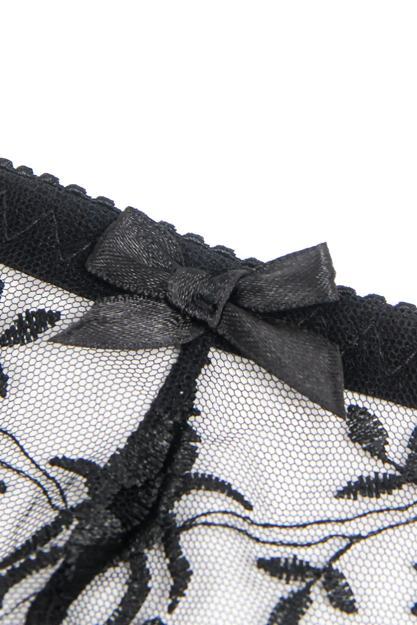 Μία απόλυτα θηλυκή εκδοχή της αισθησιακής κομψότητας. Το μαύρο embroidery lace garter σλιπ με ζαρτιέρες αποπνέει πολυτέλεια και μυστηριώδη γοητεία. Η διάφανη δαντέλα με ανάγλυφο κέντημα λουλουδιών δημιουργεί ένα εντυπωσιακό παιχνίδι στο φως, αποκαλύπτοντας και κρύβοντας με απόλυτη αρμονία.