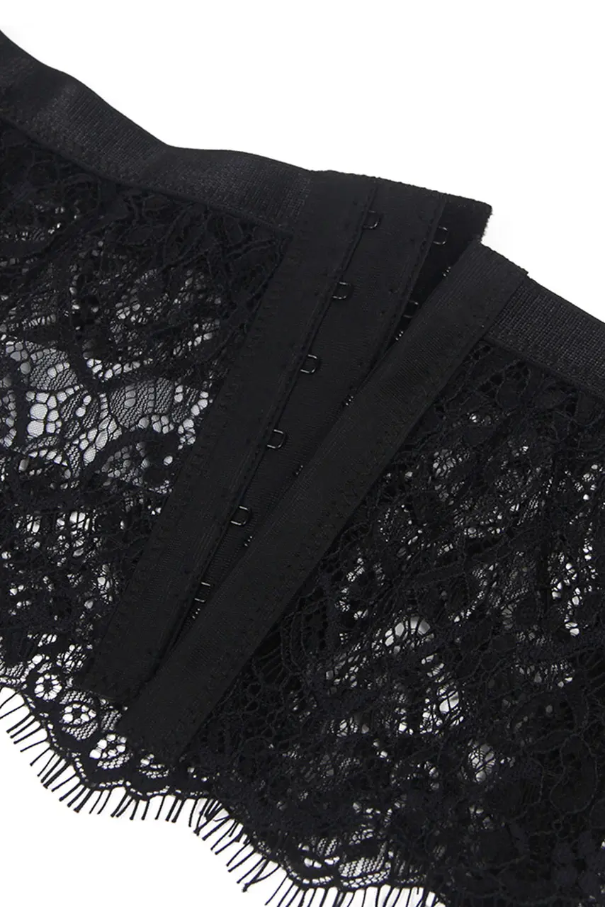 Μαύρο eyelash lace high waist garter σλιπ-3