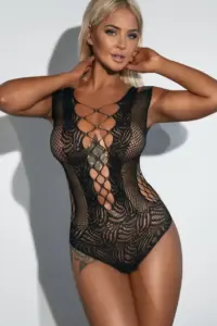 Το εμπρός σχέδιο με criss-cross κορδόνια στο ντεκολτέ αναδεικνύει το μπούστο με εντυπωσιακό τρόπο, ενώ το άνοιγμα στον καβάλο προσθέτει αυτό το στοιχείο πρόκλησης που απογειώνει τη διάθεση και τη φαντασία. Η ελαστική εφαρμογή του επιτρέπει απόλυτη άνεση, προσαρμόζεται σε κάθε σωματότυπο και ακολουθεί τις κινήσεις του σώματος με μαλακή, διακριτική αίσθηση.