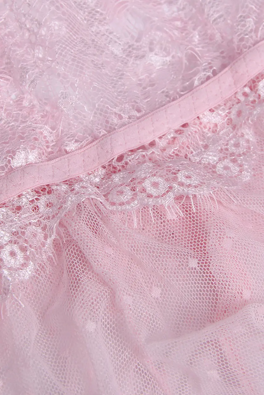 Ρομαντικό και απολύτως θηλυκό, το δαντελένιο teddy lingerie με βαθύ V είναι η επιτομή του girly sensuality. Με απαλή ροζ απόχρωση, ανάλαφρη διαφάνεια και λεπτομέρειες floral δαντέλας, χαρίζει ονειρικό vibe που αγκαλιάζει το σώμα με κομψότητα και χάρη.