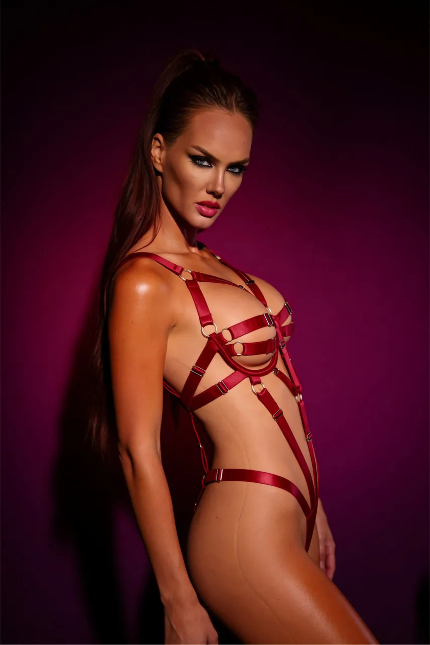 Είσαι έτοιμη να απελευθερώσεις τη femme fatale που κρύβεις μέσα σου; Το Red Bondage Bodysuit με ρυθμιζόμενα λουριά είναι η επιτομή της τολμηρής θηλυκότητας. Σχεδιασμένο για να τραβά τα βλέμματα, το κόκκινο αυτό body αγκαλιάζει τις καμπύλες σου με έντονα γεωμετρικά cut-outs και μεταλλικούς κρίκους που παραπέμπουν σε bondage αισθητική — πάντα με στιλ.