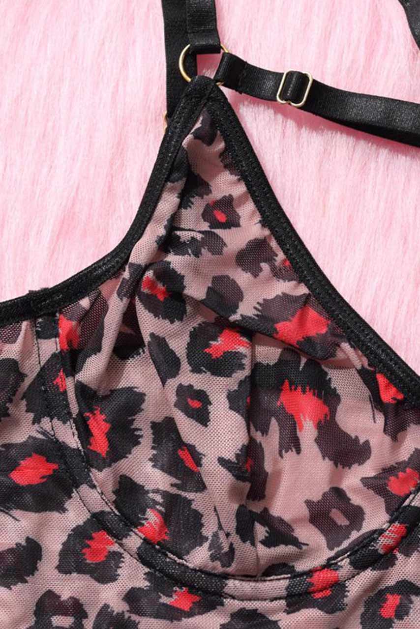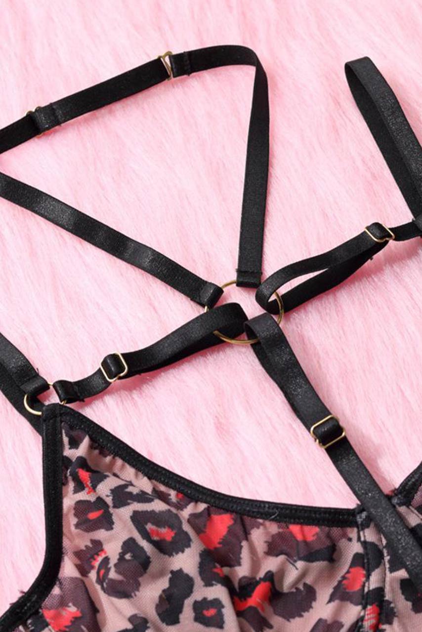 Red λεοπάρ κορμάκι σε bandage στύλ με ζαρτιέρες