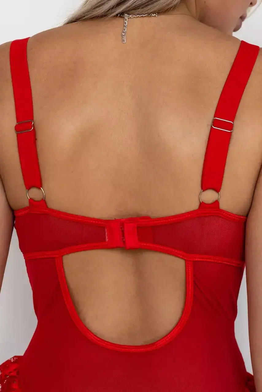 Κόκκινο retro διάφανο κορμάκι με δαντέλα Κόκκινο retro διάφανο κορμάκι με δαντέλα