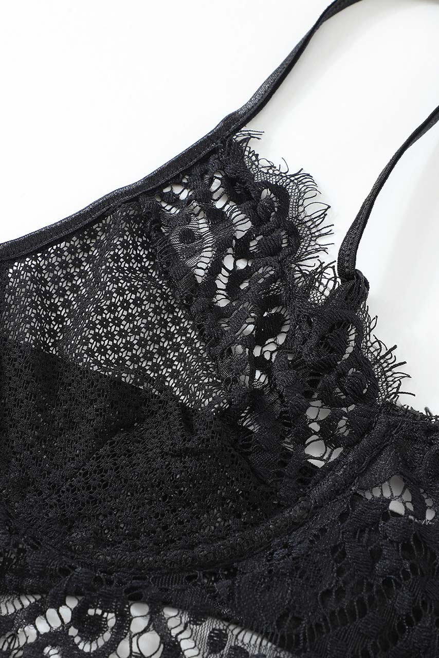 Vintage cut retro σετ δαντέλας σε μαύρο χρώμα με bralette top και ψηλόμεσο σλιπ με δαντέλα και σλιπ διαφάνειας.
