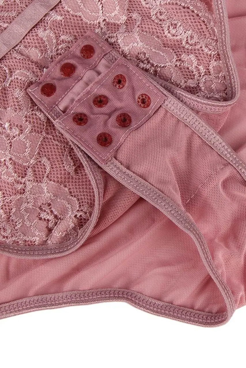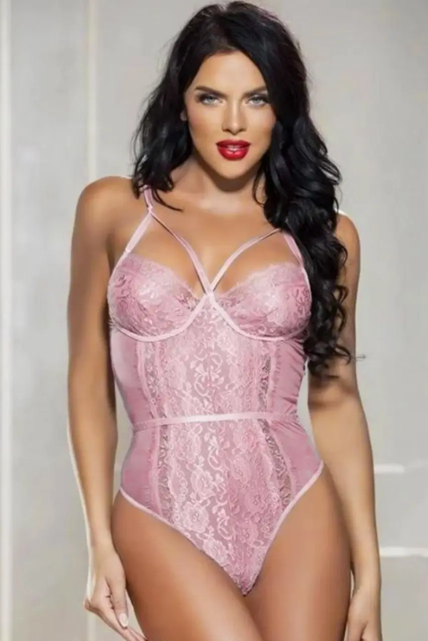Το ροζ powder κορμάκι είναι η τέλεια ισορροπία ανάμεσα σε ρομαντισμό και αποπλάνηση. Η ανάλαφρη δαντέλα και το ημιδιαφανές τούλι αγκαλιάζουν το σώμα με διακριτικό αισθησιασμό, ενώ οι λεπτές τιράντες και οι λωρίδες στο μπούστο τονίζουν το ντεκολτέ χωρίς υπερβολές.