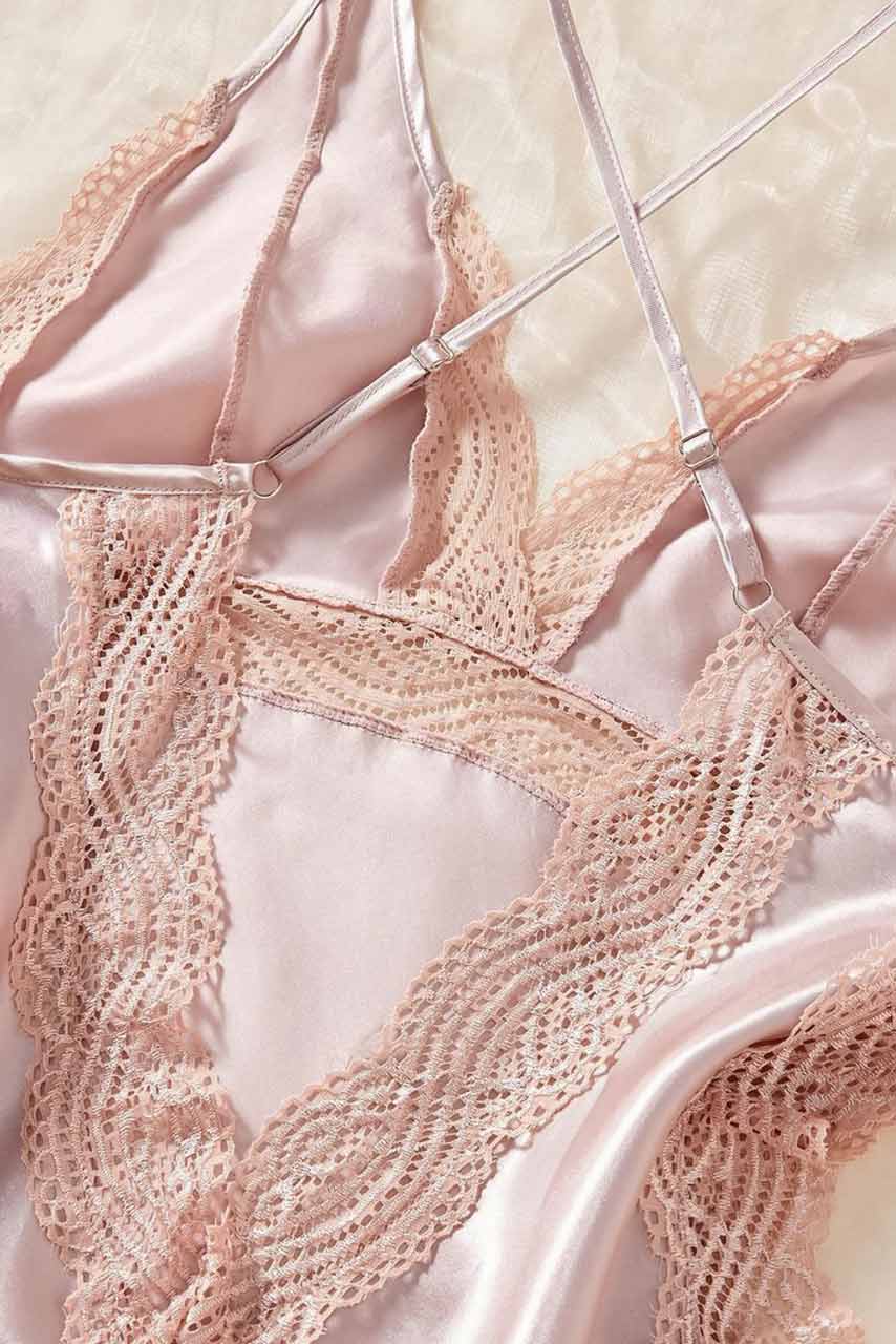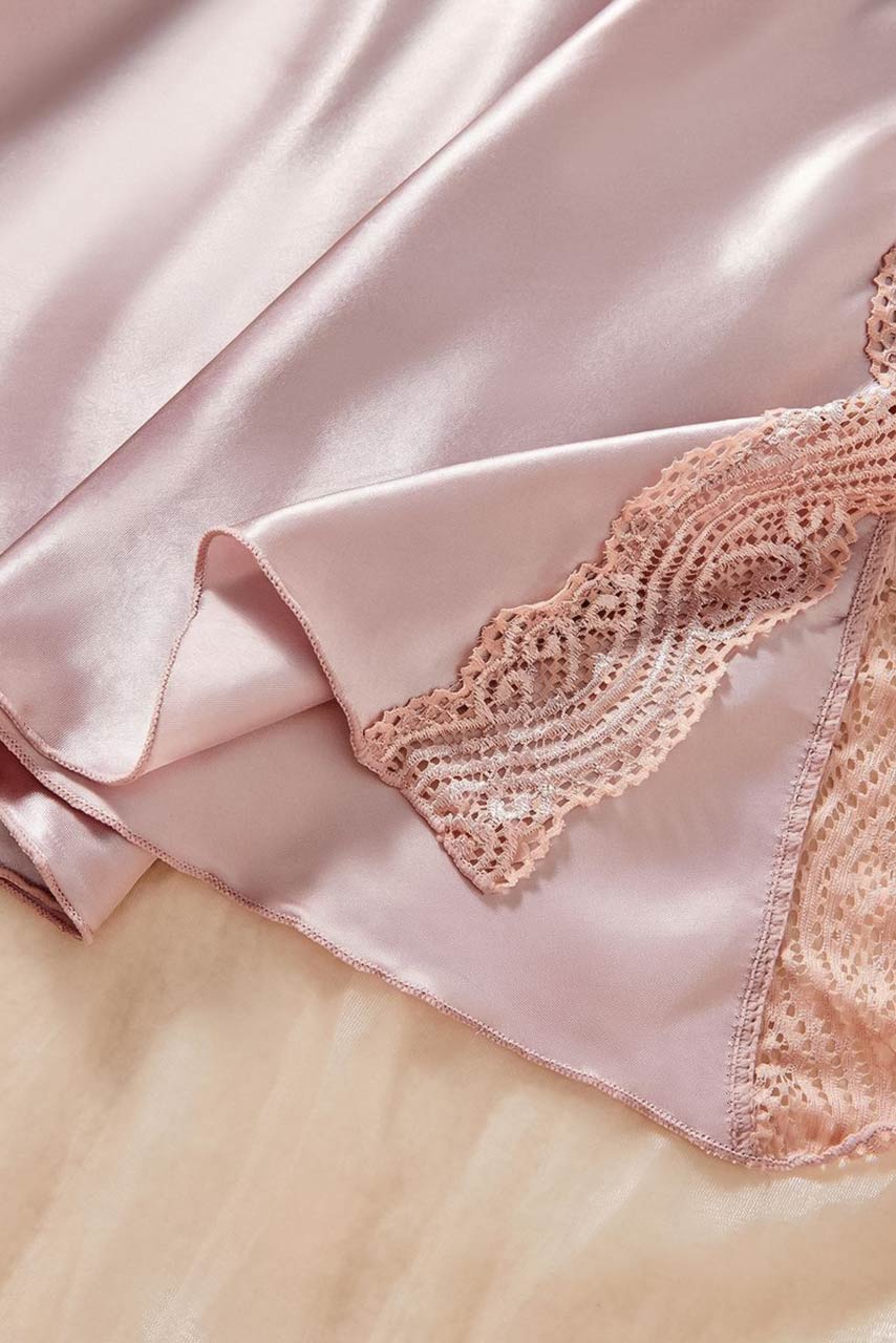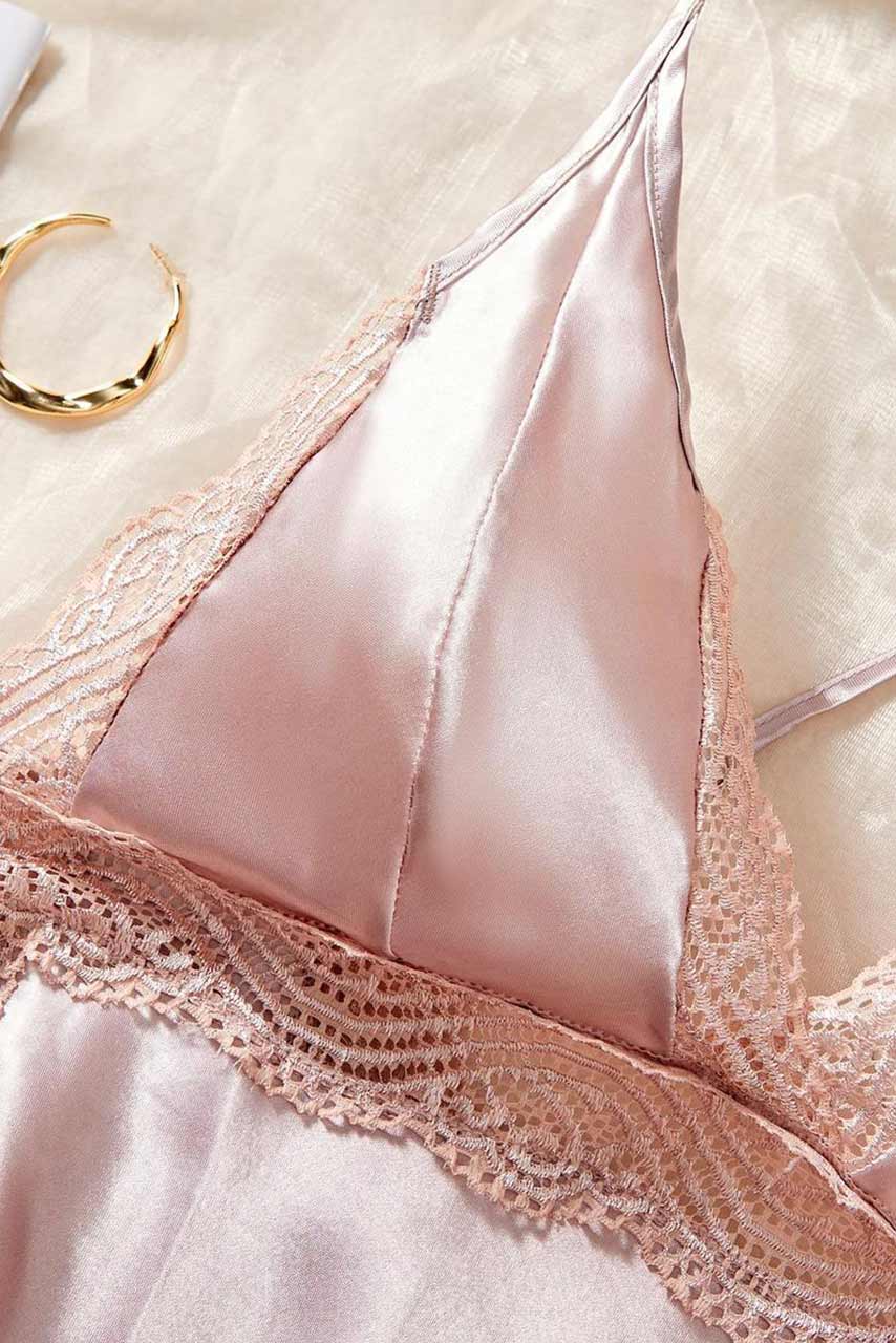 Ροζ σατέν babydoll με ανοιχτή πλάτη και σκισίματα στα πλαϊν. Ιδανικό για ρομαντικές βραδιές.