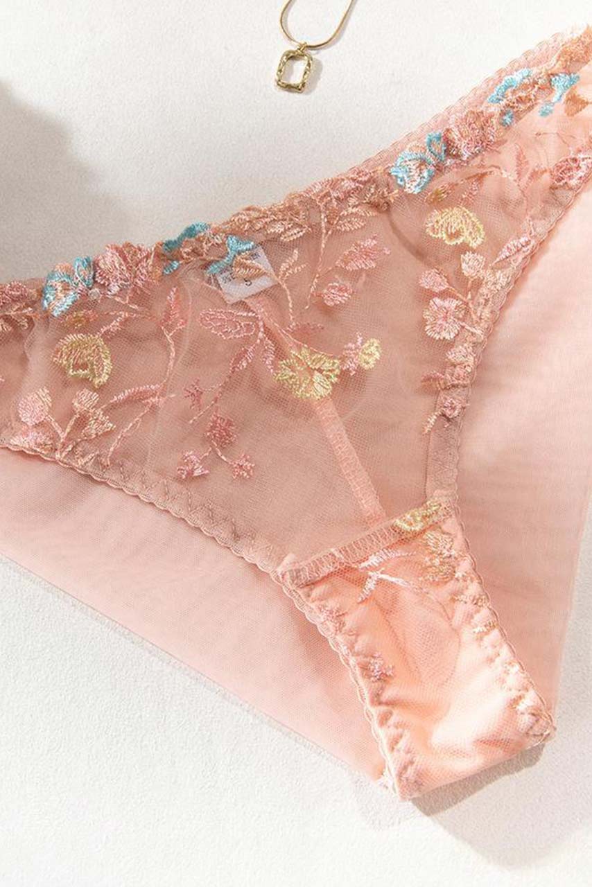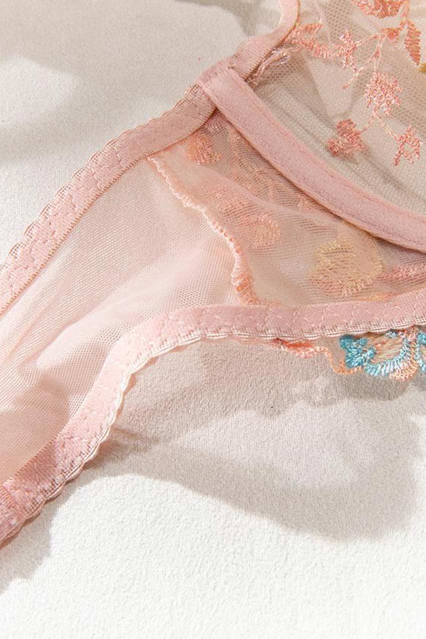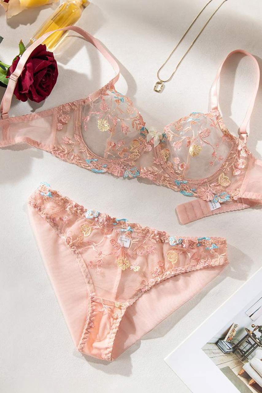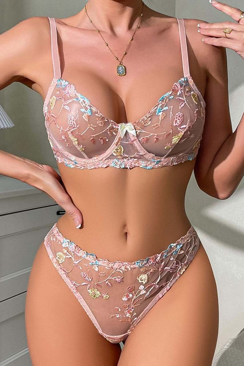 See through σετ εσωρούχων με κεντημένα λουλούδια