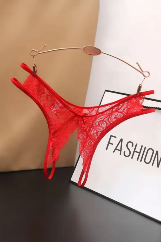 Αισθησιακό, ρομαντικό και ακαταμάχητο – το Sexy δαντελένιο σλιπ με άνοιγμα σε κόκκινο είναι το απόλυτο lingerie για στιγμές γεμάτες πάθος. Η διαφανής floral δαντέλα ενισχύει τη θηλυκή ενέργεια, ενώ το σαγηνευτικό άνοιγμα στο κάτω μέρος υπόσχεται να αιχμαλωτίσει το βλέμμα.