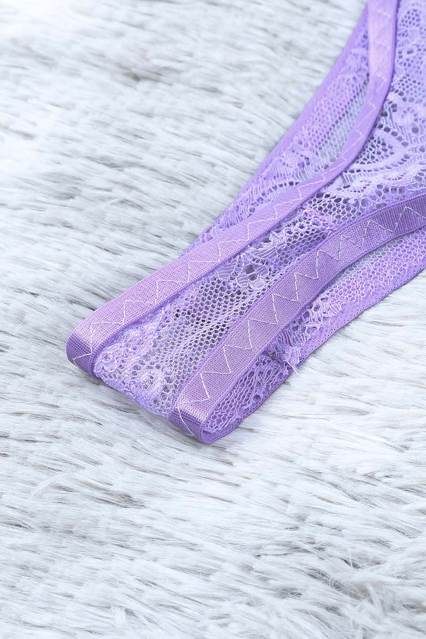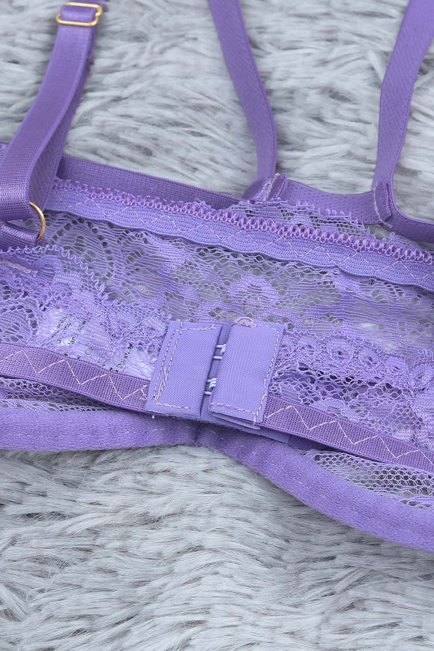 Romantic glam rock strappy μωβ σετ εσωρούχων με διάφανο σουτιέν από δαντέλα on top και στρινγκ με έξτρα κορδόνια all over straps.