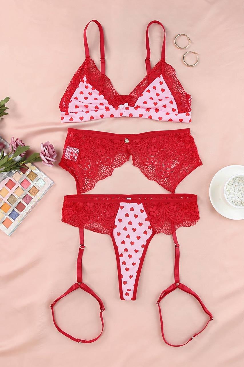 Lingerie σετ καρδούλες τριών τεμαχίων