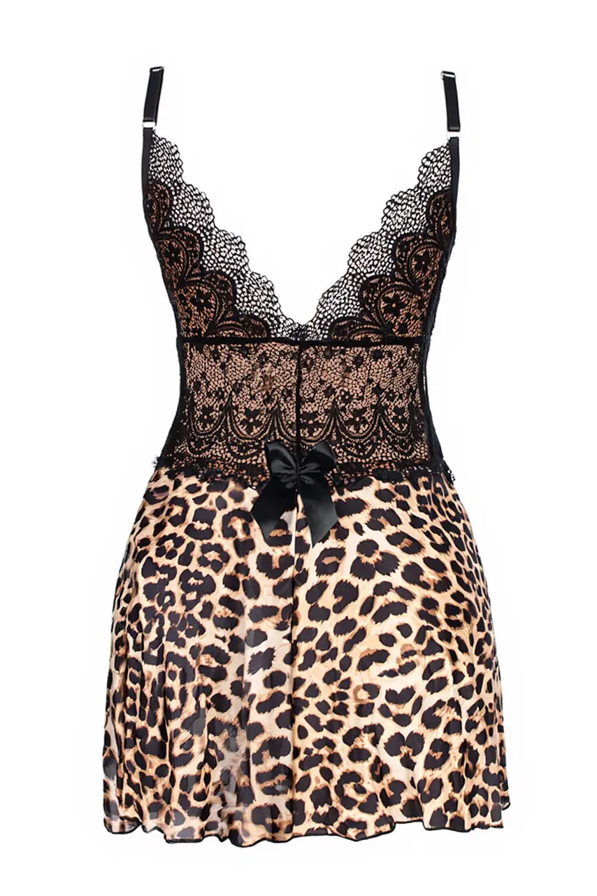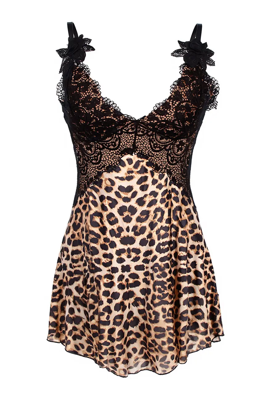 Leopard babydoll με v λαιμόκοψη και δαντέλα