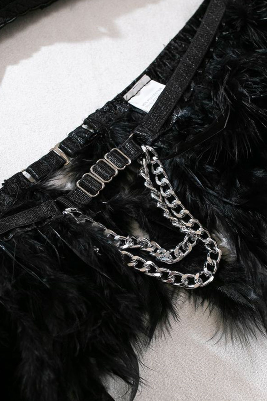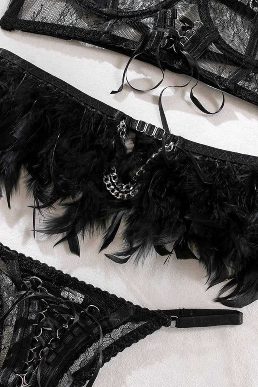 Ανακάλυψε το πιο σέξι και ιδιαίτερο σετ underwear 3 τεμαχίων με διακοσμητικά φτερά.