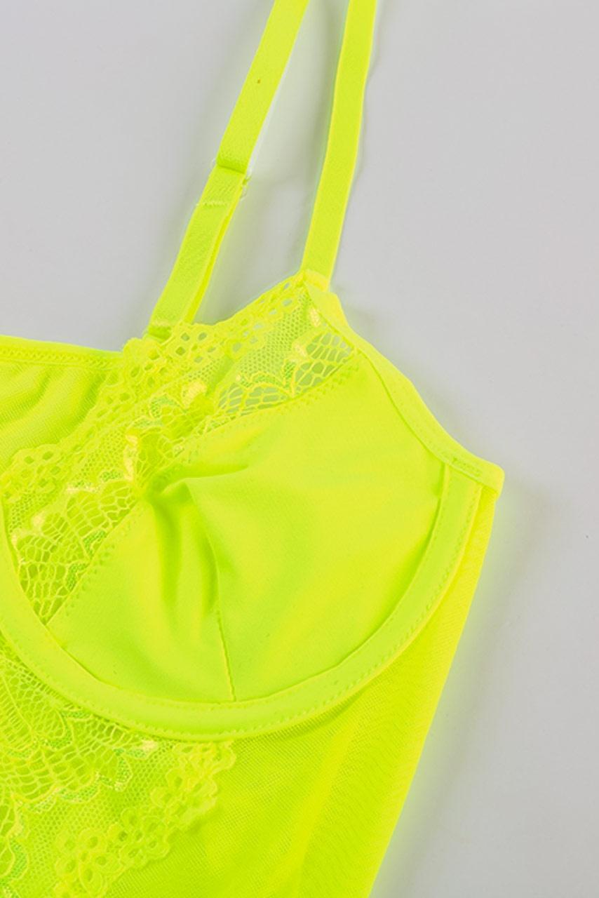 Κίτρινο body με δαντέλα, μικρό ντεκολτέ και brazil κόψιμο. Ένα μοναδικό κορμάκι με ρυθμιζόμενες τιράντες και κούμπωμα κάτω. Το άκρως καλοκαιρινό body που θα σας αναδείξει.