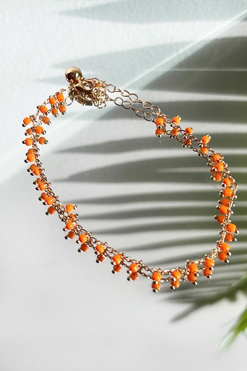 Αλυσίδα ποδιού χρυσή με χάντρες πορτοκάλι