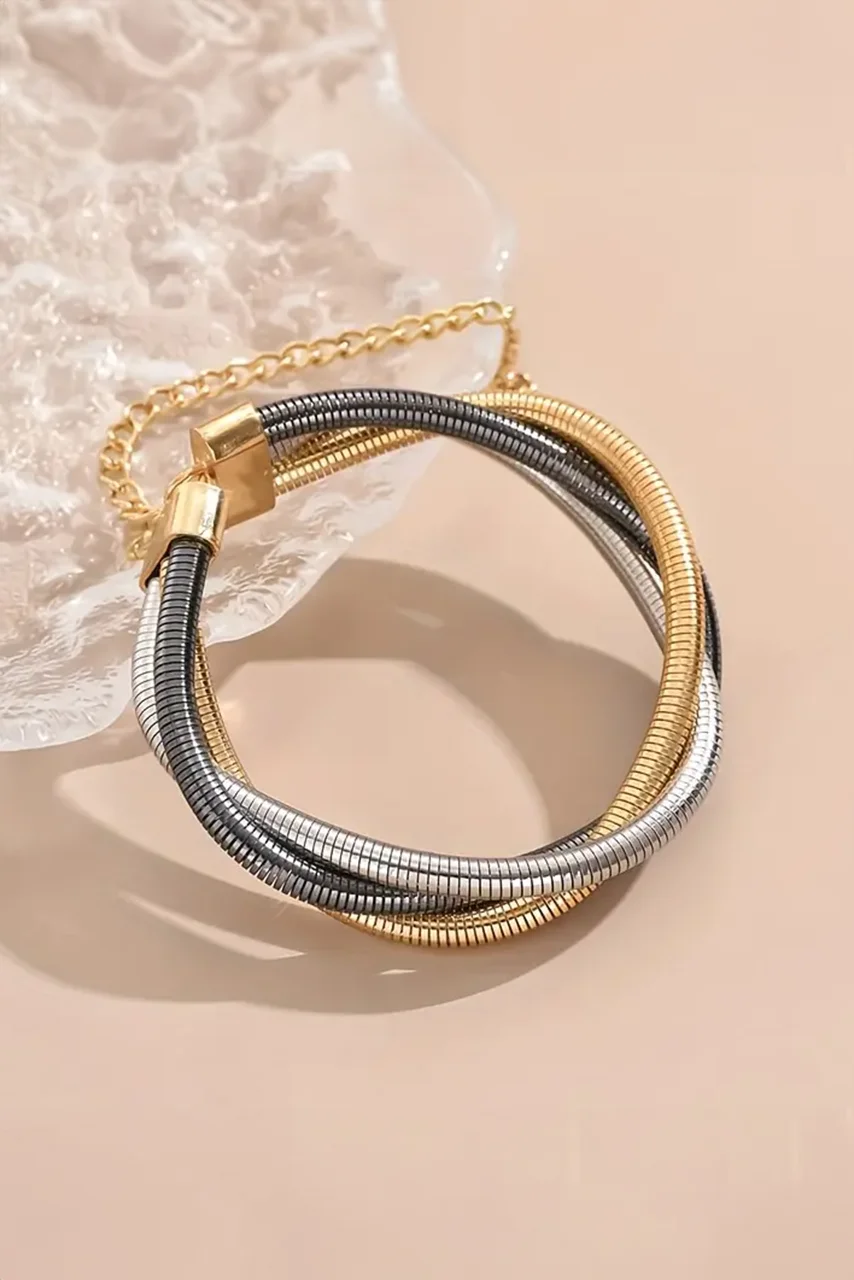 Βραχιόλι στριφτό μεταλλικό πολύχρωμο χρυσαφί