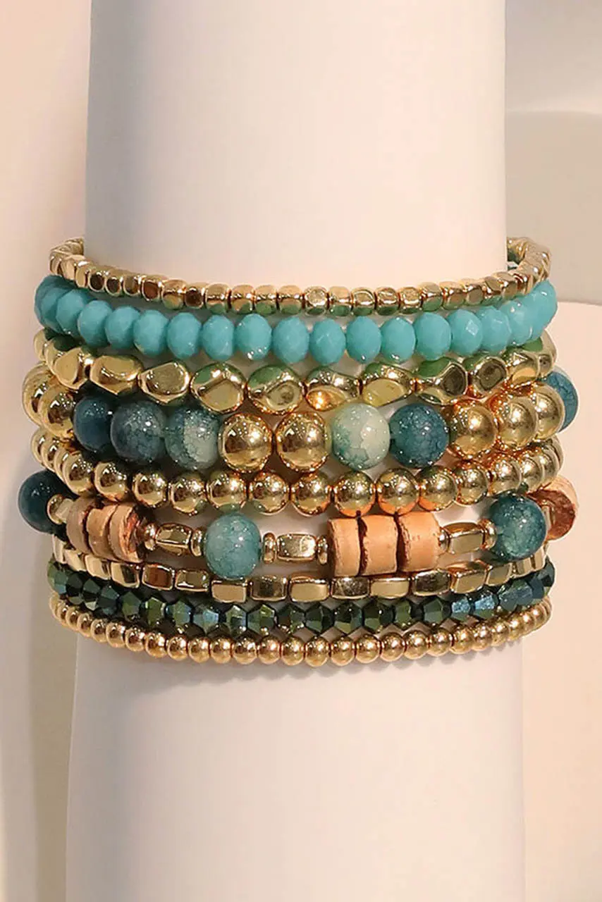 Απογείωσε το καθημερινό σου στυλ με αυτό το εντυπωσιακό σετ boho βραχιολιών. Με μια ακαταμάχητη μίξη από τιρκουάζ, μεταλλικές και ξύλινες χάντρες σε χρυσή βάση, το layered design δημιουργεί μια statement εμφάνιση που ακροβατεί ανάμεσα στο καλοκαιρινό free spirit και το city chic. Ιδανικό για festival looks, resort looks ή για να δώσεις ένα ζεστό, artistic twist στην urban αισθητική σου. Style it with: Λευκά λινά φορέματα, wide-leg denim ή beachwear για ένα look που αποπνέει ανεπιτήδευτη κομψότητα.