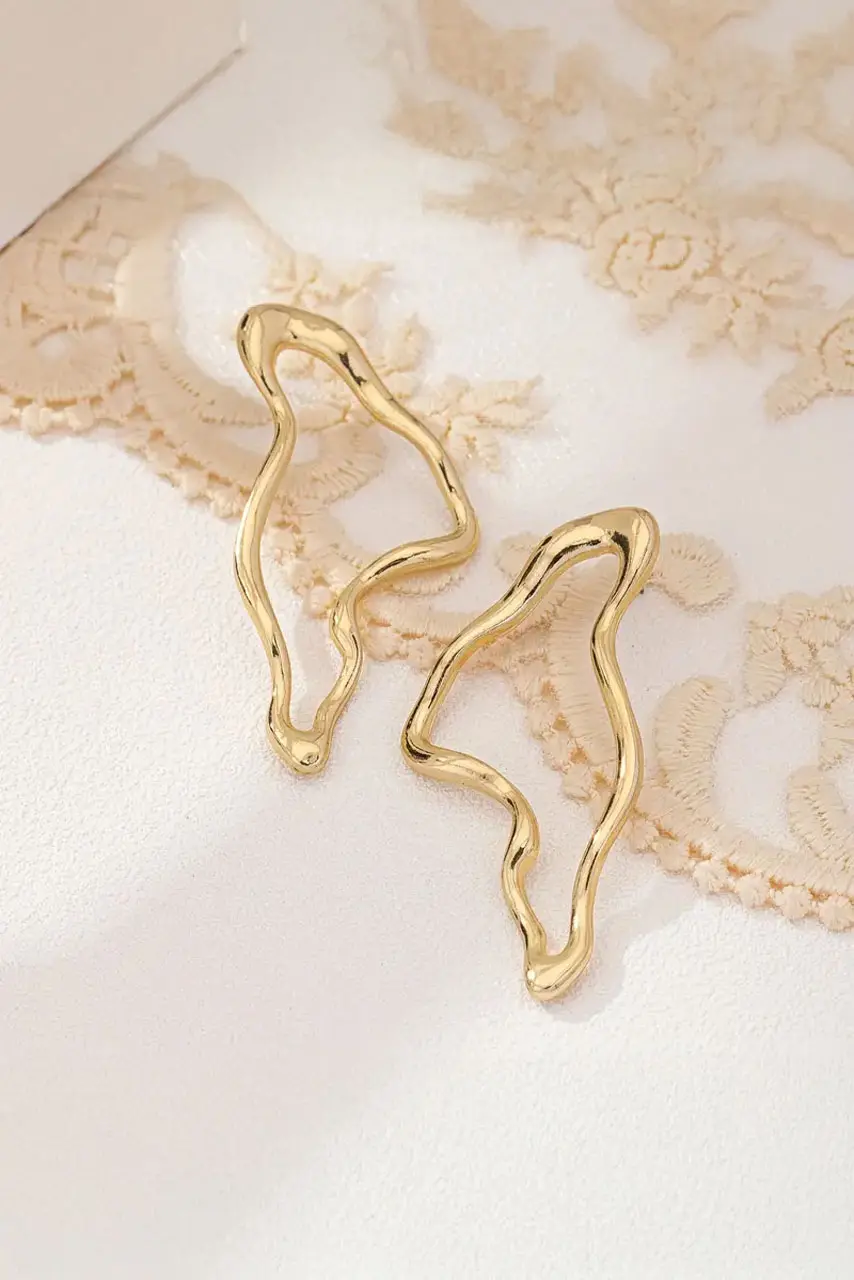Χρυσά abstract σκουλαρίκια – όταν η τέχνη συναντά το κόσμημα. Με οργανικές καμπύλες που θυμίζουν ελεύθερη ροή και γλυπτική φόρμα, αυτά τα σκουλαρίκια αποτελούν το απόλυτο statement piece για κάθε γυναίκα που τολμά να ξεχωρίσει. Η χρυσή τους λάμψη συνδυάζεται ιδανικά με το ανάλαφρο, ακανόνιστο σχήμα, δημιουργώντας ένα sculptural αποτέλεσμα που μαγνητίζει.