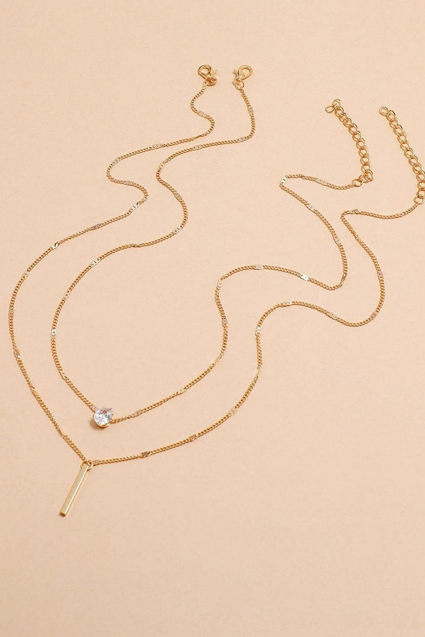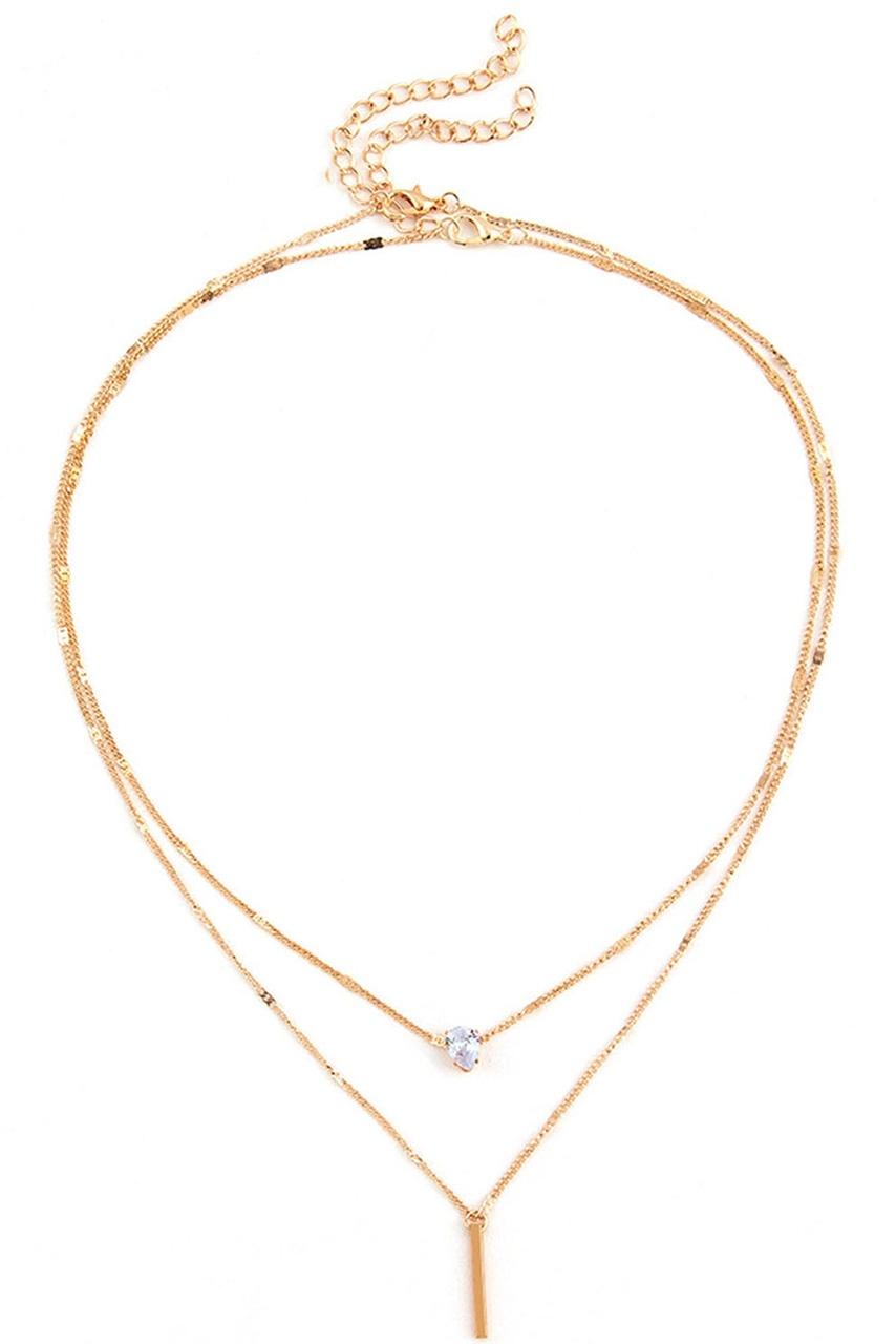 Διπλό κολιέ σε χρυσό απόχρωση με κρεμαστό ζιργκόν πετραδάκι και κούμπωμα πίσω. Γιατί το layering είναι το must της σεζόν.