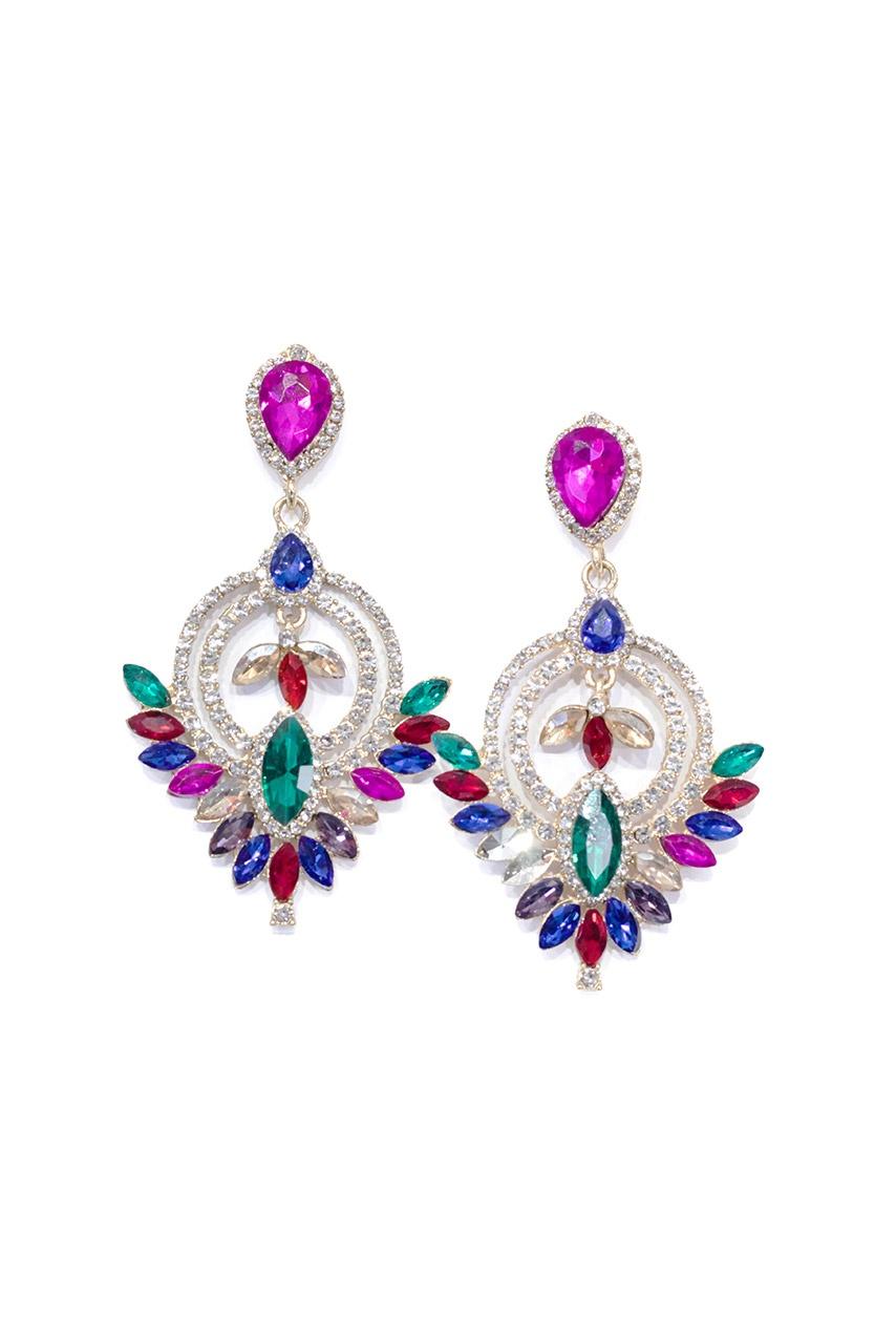 Glam σκουλαρίκια με λεπτομέρεια πέτρας σε ποπ χρώματα και κούμπωμα στην πίσω μεριά.