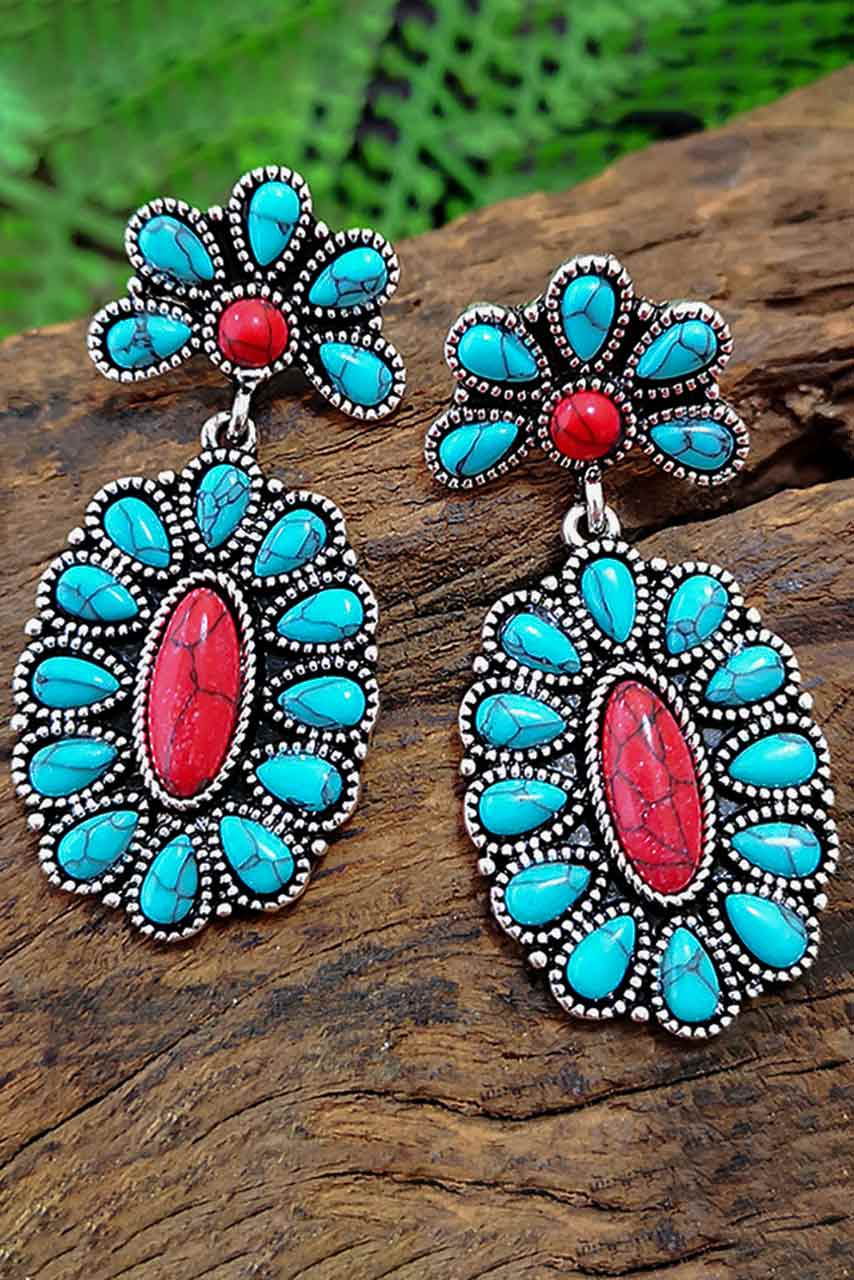 Καλοκαιρινά boho style κρεμαστά με πέτρες σε μπλε και κόκκινες αποχρώσεις μεσαίου μεγέθους. Το κούμπωμα είναι καρφωτό.