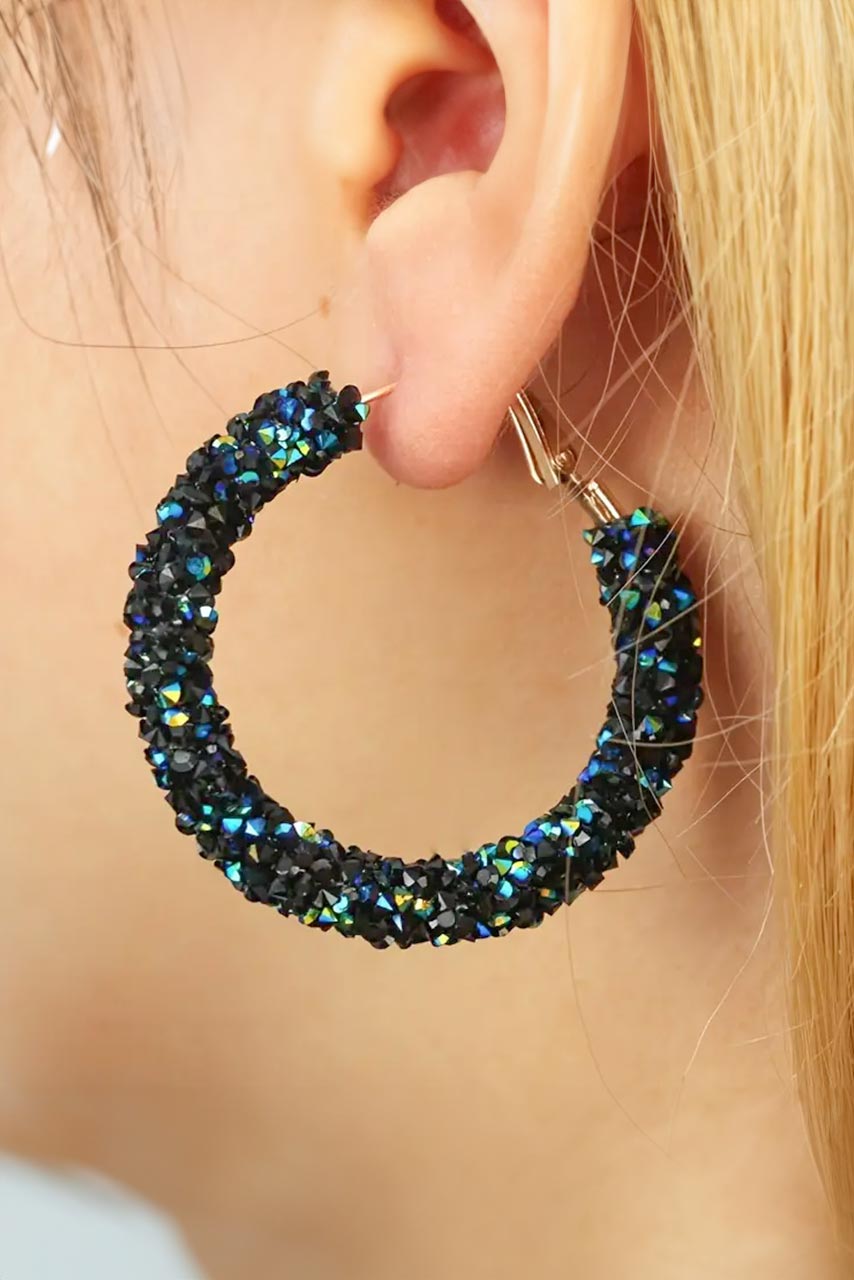 Σκουλαρίκια μπλέ κρίκοι με πέτρες στρας περιμετρικά.