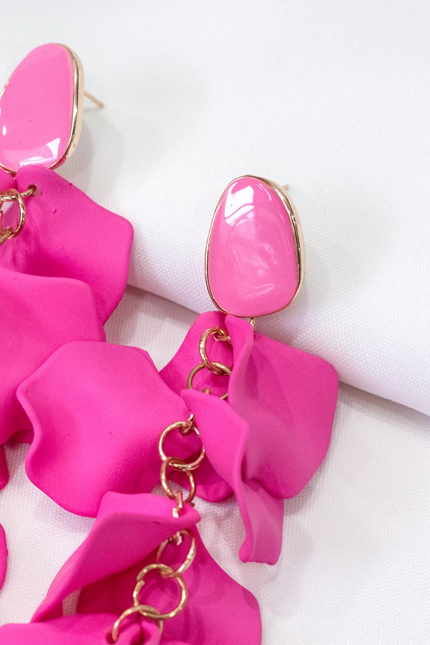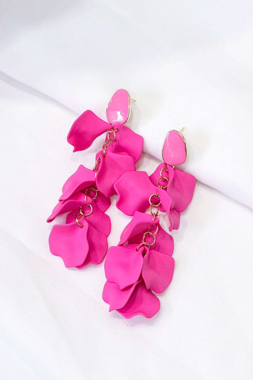 Hippie glam σκουλαρίκια με χρωματιστά πέταλα σε φούξια απόχρωση.