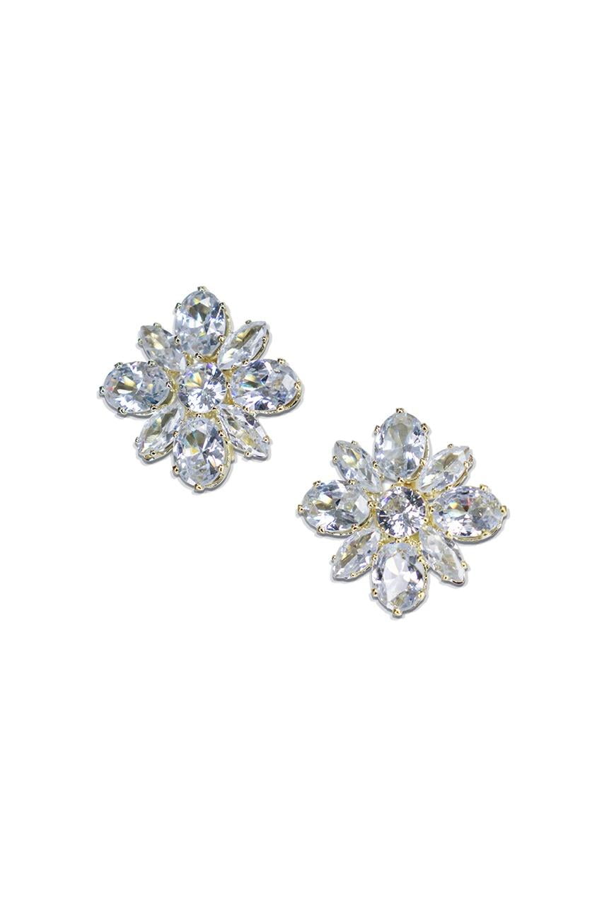 • Σκουλαρίκια λουλούδι με πέτρες | Με κλιπ