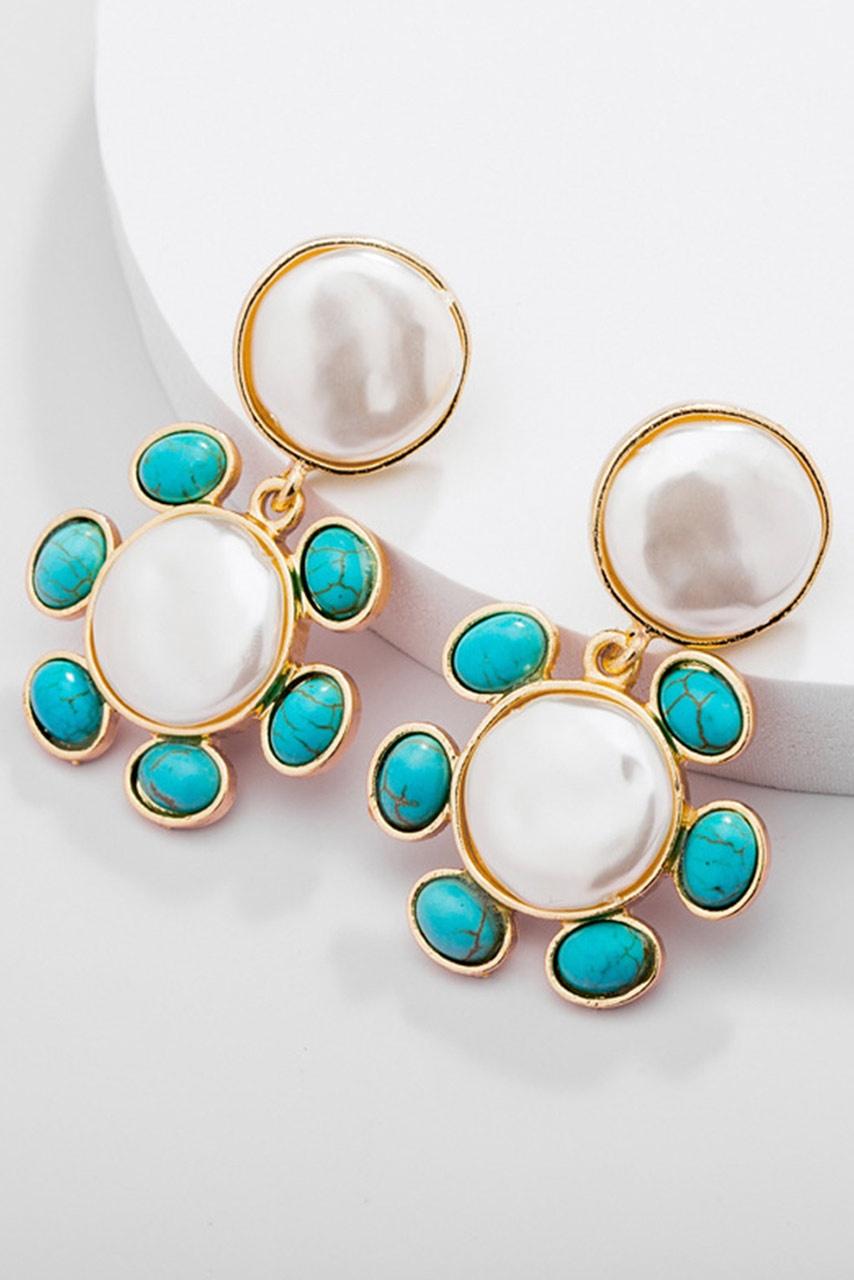 Κρεμαστά μεγάλου μεγέθους σκουλαρίκια με τιρκουάζ πέτρες και πέρλες. Ιδανικά για να ολοκληρώσεις το καλοκαιρινό σου look.