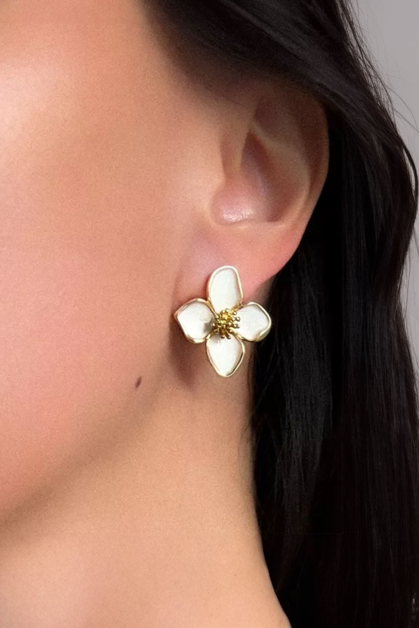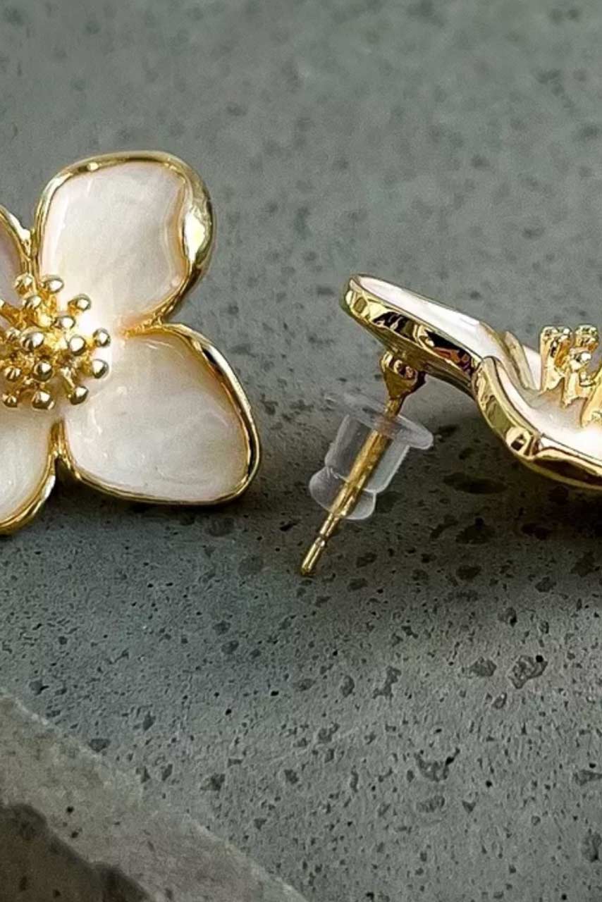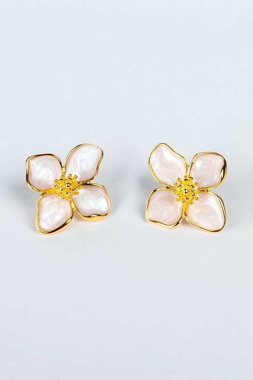 Ένα διακριτικό αλλά εντυπωσιακό αξεσουάρ που θα φωτίσει κάθε εμφάνιση! Τα σκουλαρίκια σε σχήμα λουλουδιού με περλέ πέταλα και χρυσές λεπτομέρειες αποπνέουν ρομαντισμό και διακριτική πολυτέλεια. Το elegant design τους τα καθιστά ιδανικά για καθημερινή χρήση αλλά και για πιο ιδιαίτερες περιστάσεις.Ελαφριά και άνετα, με βελόνα και σιλικονούχο κούμπωμα για σταθερότητα όλη μέρα. Συνδυάζονται εύκολα με κομψά φορέματα, ρομαντικά τοπ ή ακόμα και basic λευκά πουκάμισα για ένα classy twist.
