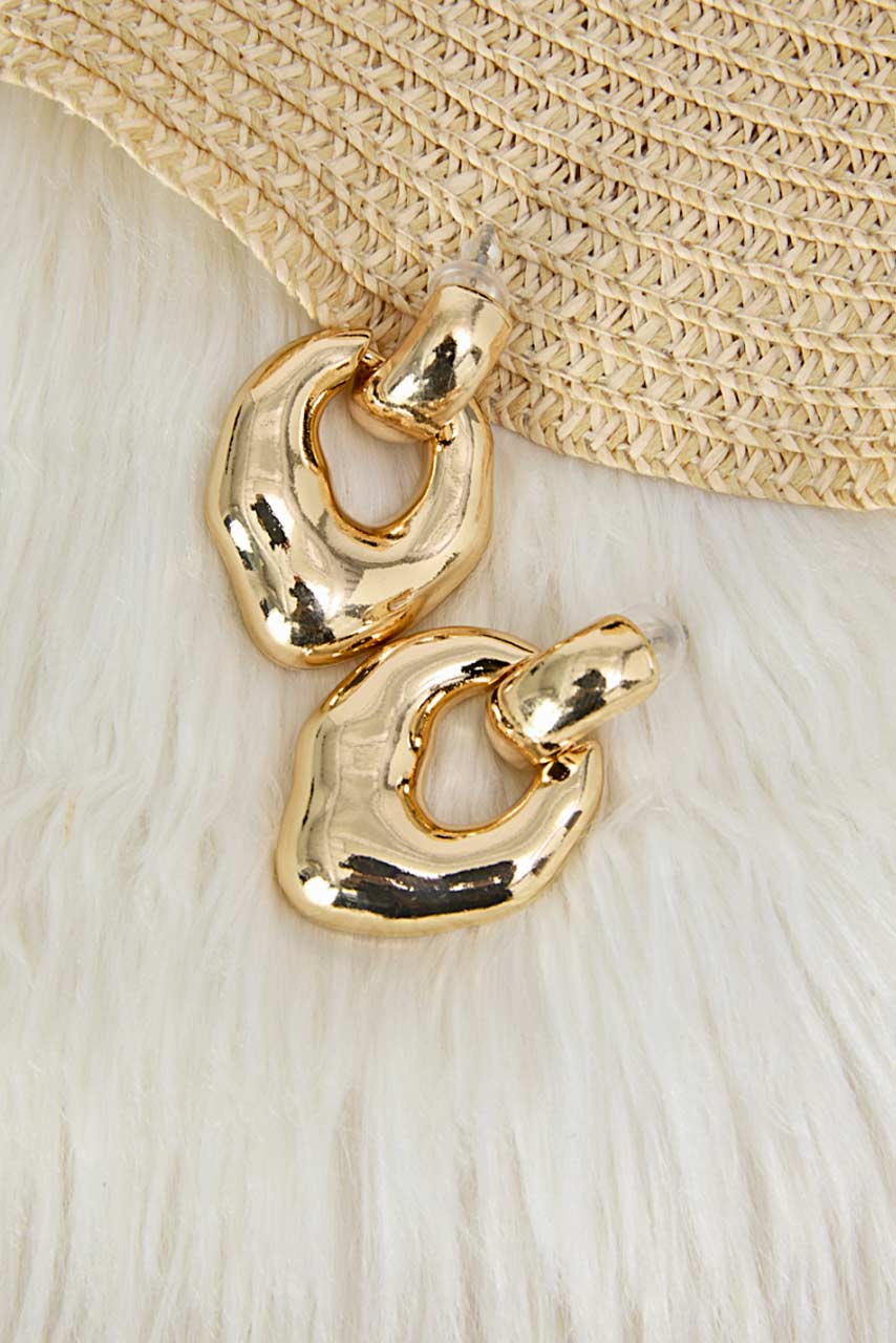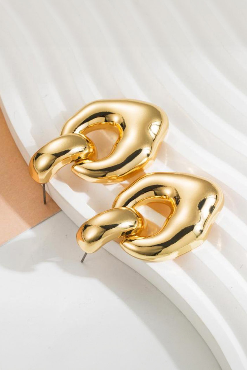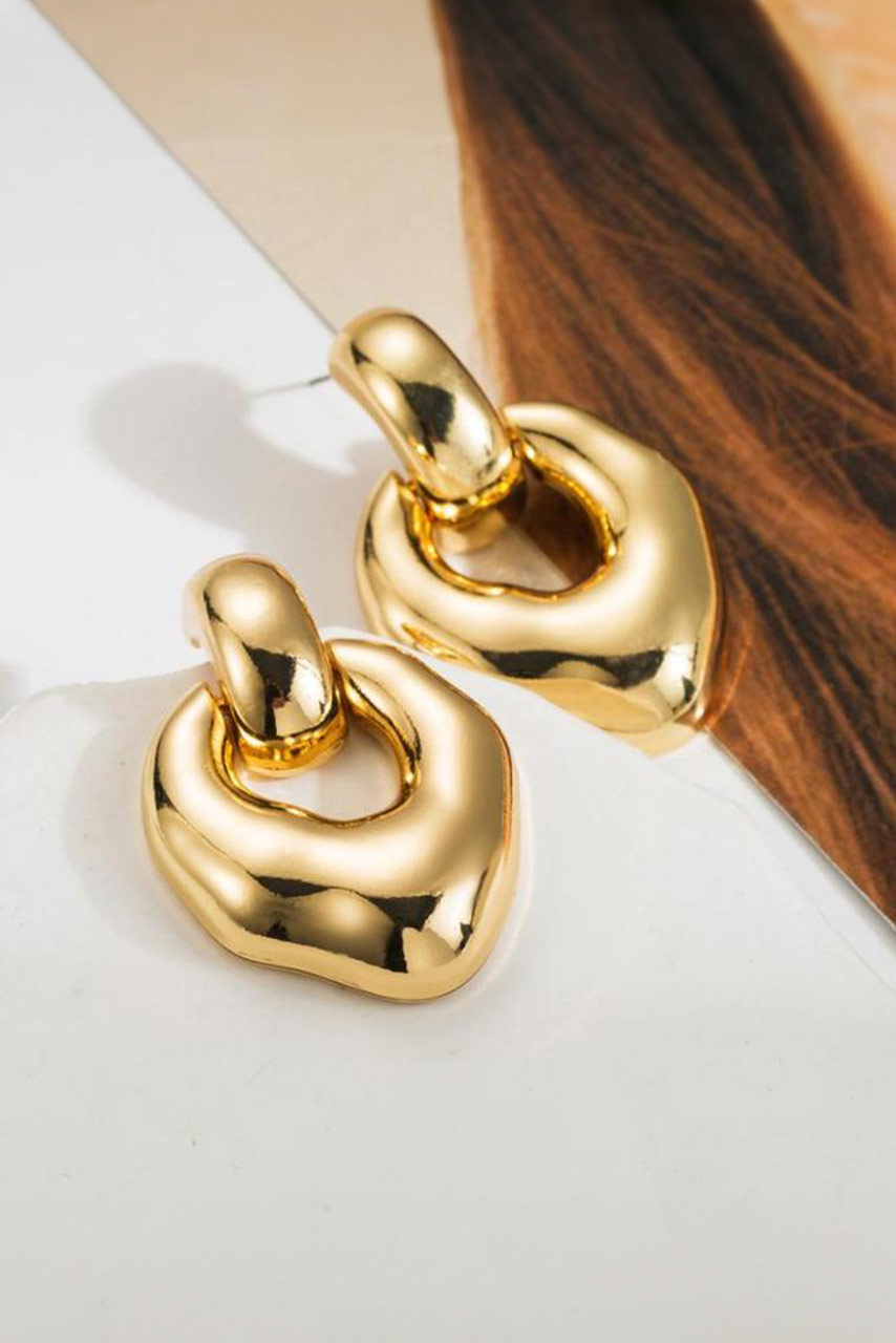 Αναδείξτε το στυλ σας με αυτά τα εντυπωσιακά κρεμαστά σκουλαρίκια σε χρυσό τόνο. Ο ιδιαίτερος, οργανικός τους σχεδιασμός προσθέτει μια μοντέρνα και κομψή πινελιά σε κάθε εμφάνιση, ενώ η μεταλλική τους λάμψη τα καθιστά ιδανικά τόσο για καθημερινές όσο και για βραδινές εμφανίσεις.