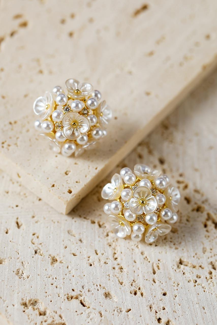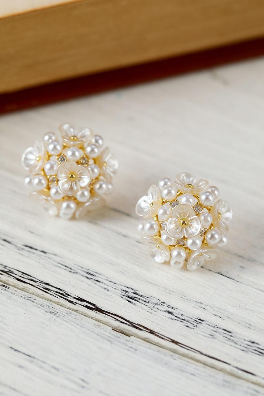 Κομψά σκουλαρίκια σε σχήμα λουλουδιού με πέρλες και strass.Είναι καρφωτά με κούμπωμα στο πίσω μέρος. Είναι γοητευτικά και κατάλληλα για κάθε περίσταση.