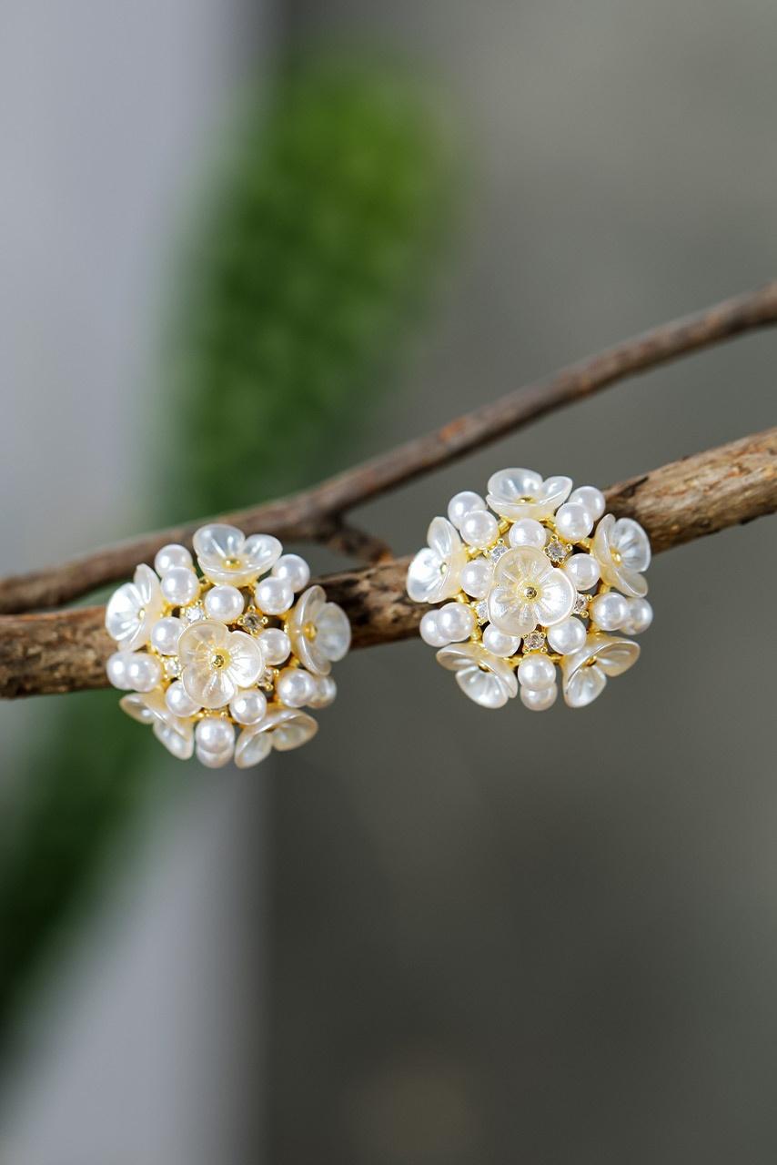 Καρφωτά σκουλαρίκια με πέρλες και λουλουδάκια