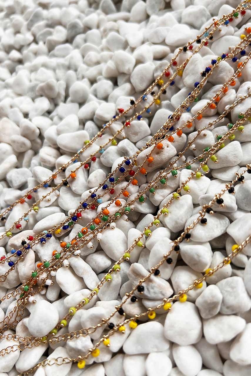 Αν και μπορείς να τη φορέσεις όλο το χρόνο, η ιδανική εποχή είναι το καλοκαίρι! Αλυσίδα ποδιού σε χρυσό χρώμα με χάντρες και κούμπωμα παπαγαλάκι.