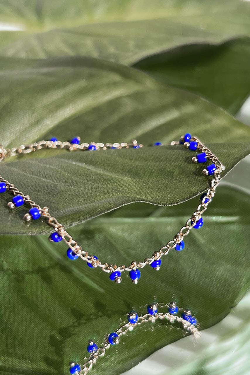 Αλυσίδα ποδιού χρυσή με χάντρες μπλε