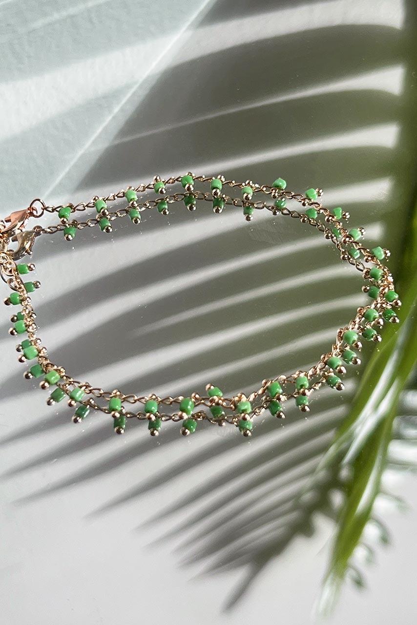 Αλυσίδα ποδιού χρυσή με χάντρες πράσινο