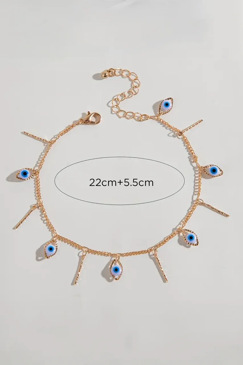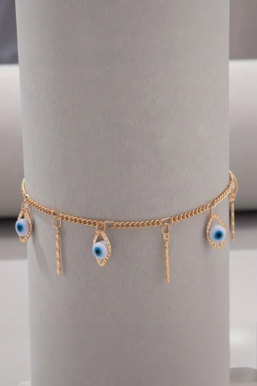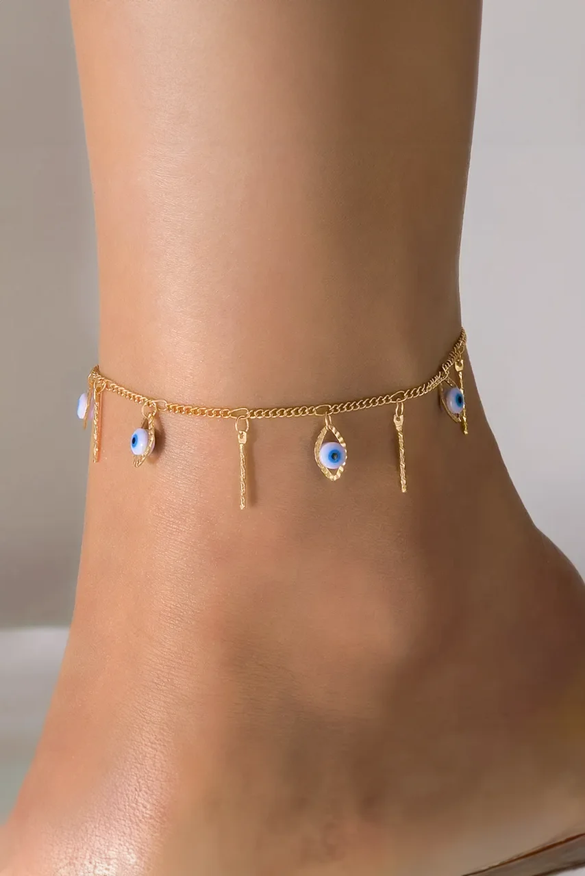 Αλυσίδα ποδιού με ματάκια και χρυσά κρεμαστά