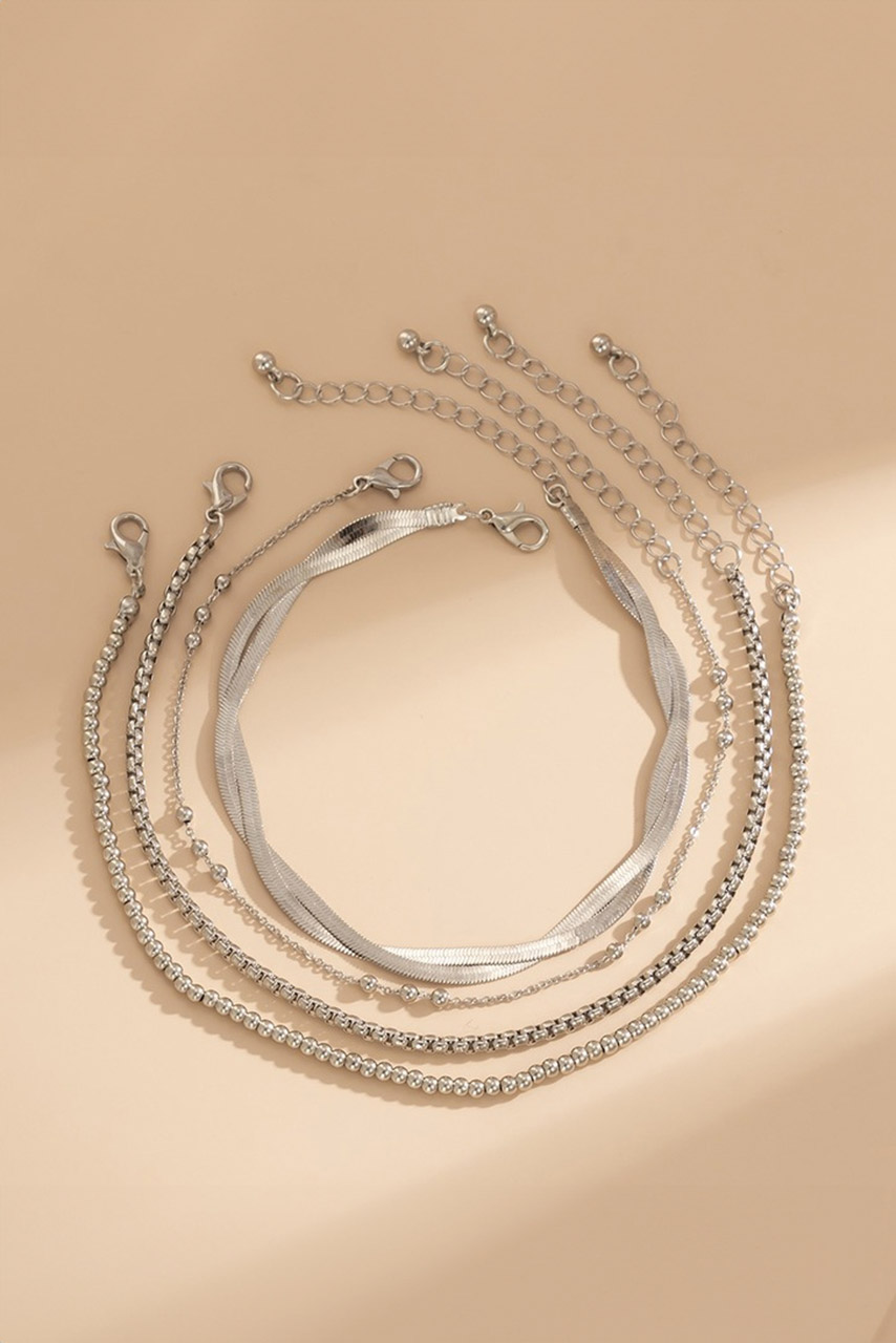 Όλα τα προϊόντα μας | Κοσμήματα | Gjewellery | Ασημένιο σετ βραχιόλια ποδιού 4 τεμ.