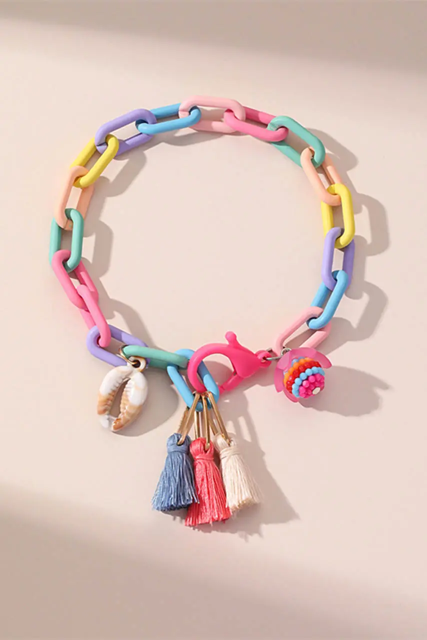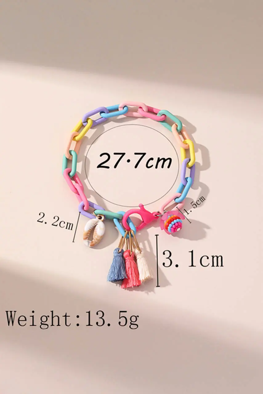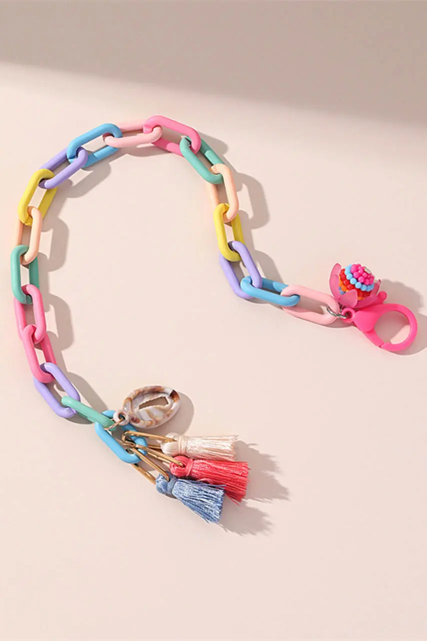 Summer tassel αλυσίδα ποδιού – ο απόλυτος σύμμαχος για boho chic εμφανίσεις στην καρδιά του καλοκαιριού. Με πολύχρωμα chain links, playful tassel και κοχύλι που θυμίζει τις πιο ανέμελες στιγμές δίπλα στο κύμα, αυτό το anklet φέρνει το νησιώτικο vibe στα καθημερινά σου looks. Φόρεσέ το ξυπόλητη στην παραλία ή συνδύασέ το με πέδιλα και αέρινα φορέματα για ένα dreamy, ανεπιτήδευτα σαγηνευτικό αποτέλεσμα. Το adjustable κούμπωμα το κάνει ιδανικό για κάθε τύπο ποδιού, ενώ τα χρώματα απογειώνουν κάθε summer outfit με fashion-forward διάθεση.