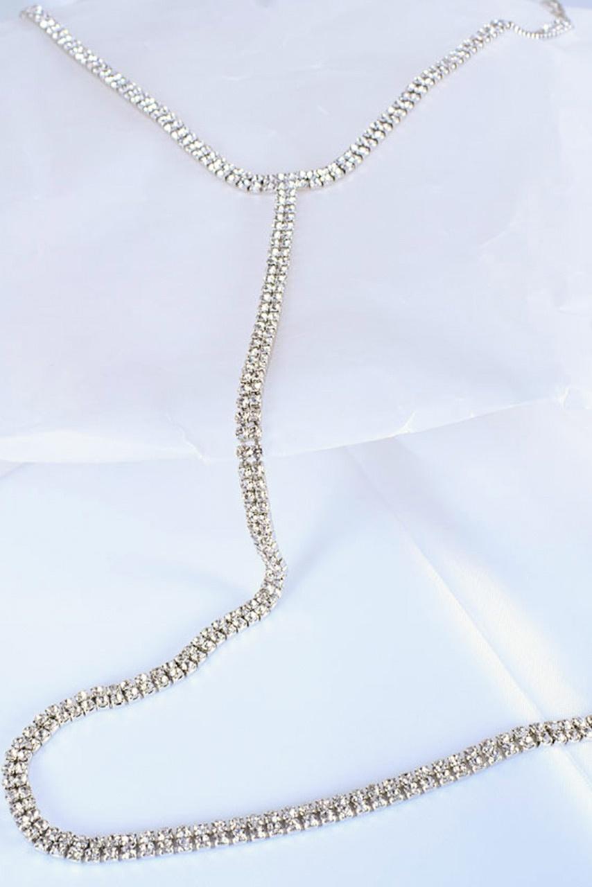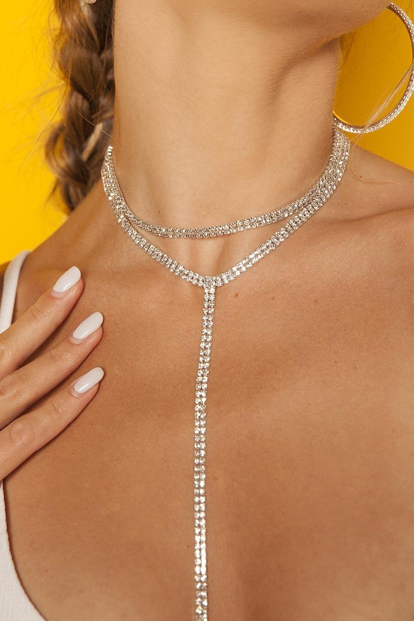 Αλυσίδα τσόκερ με στρας σε ασημί απόχρωση για λαμπερές εμφανίσεις με ρυθμιζόμενο κούμπωμα.