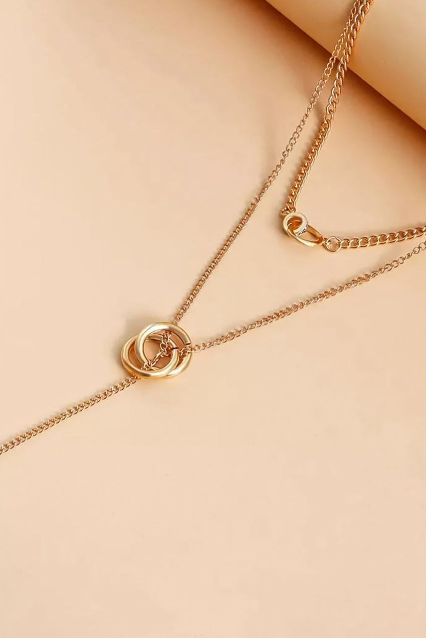 Διπλό κολιέ σε χρυσή απόχρωση με κρεμαστά στοιχεία. Το κούμπωμα ρυθμίζεται στο επιθυμητό ύψος.