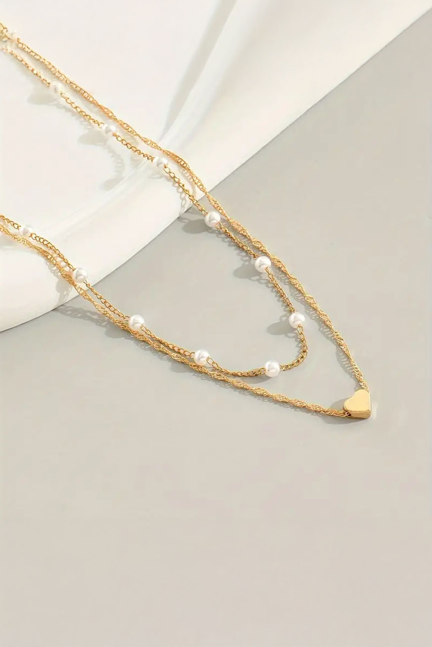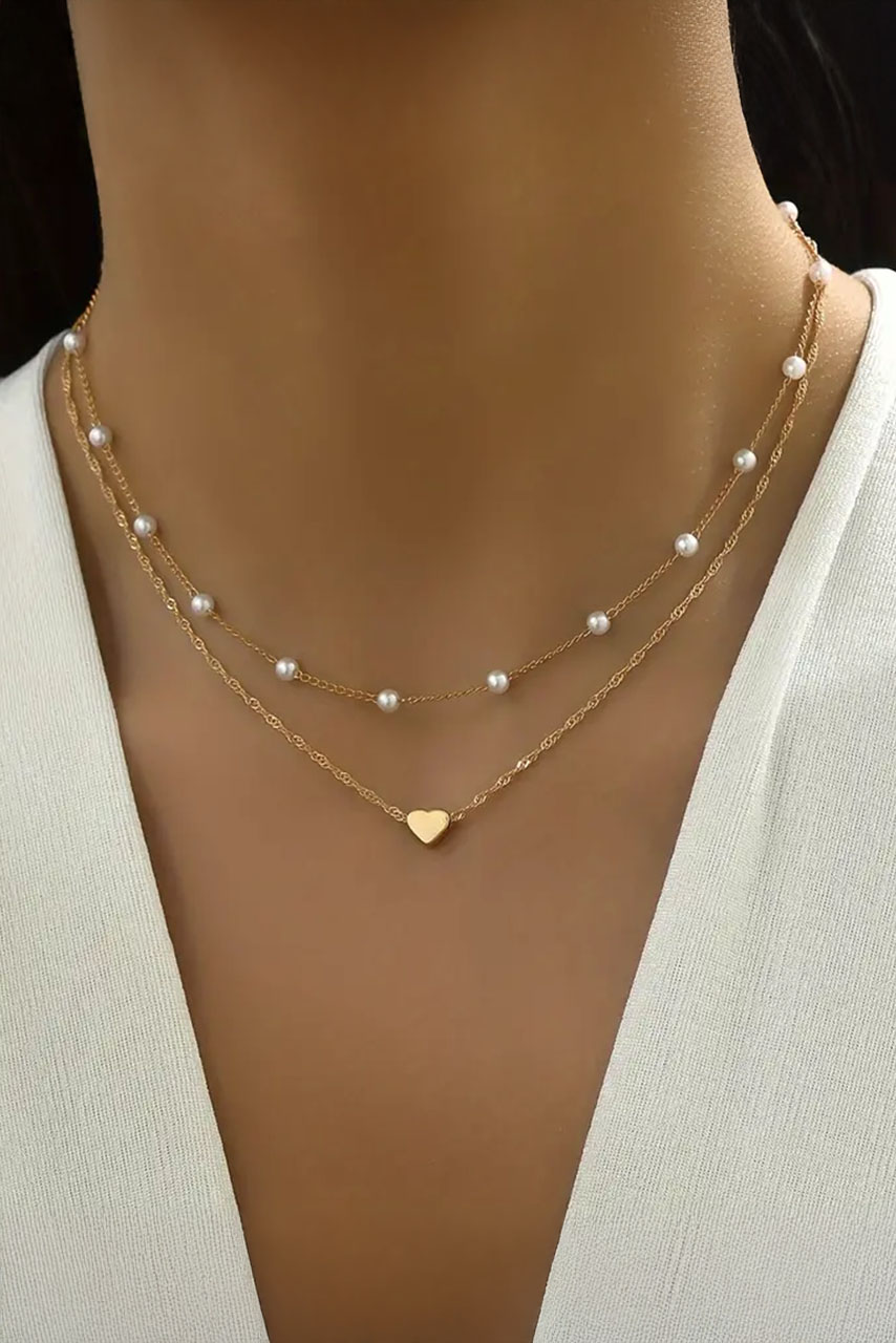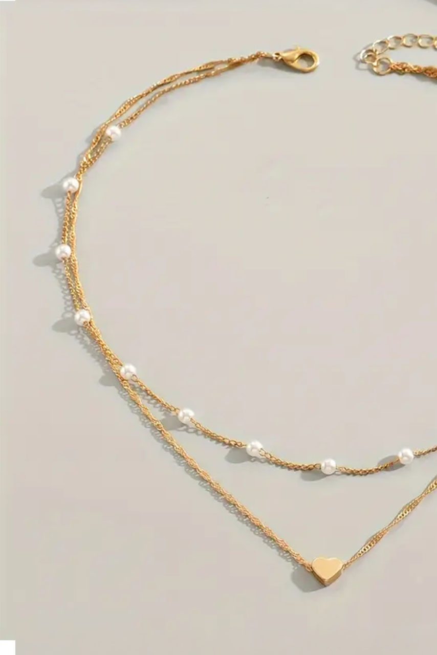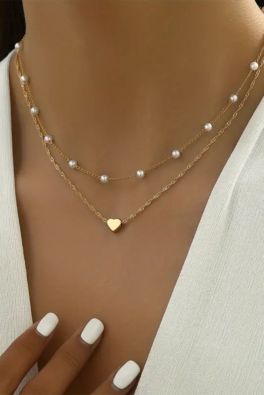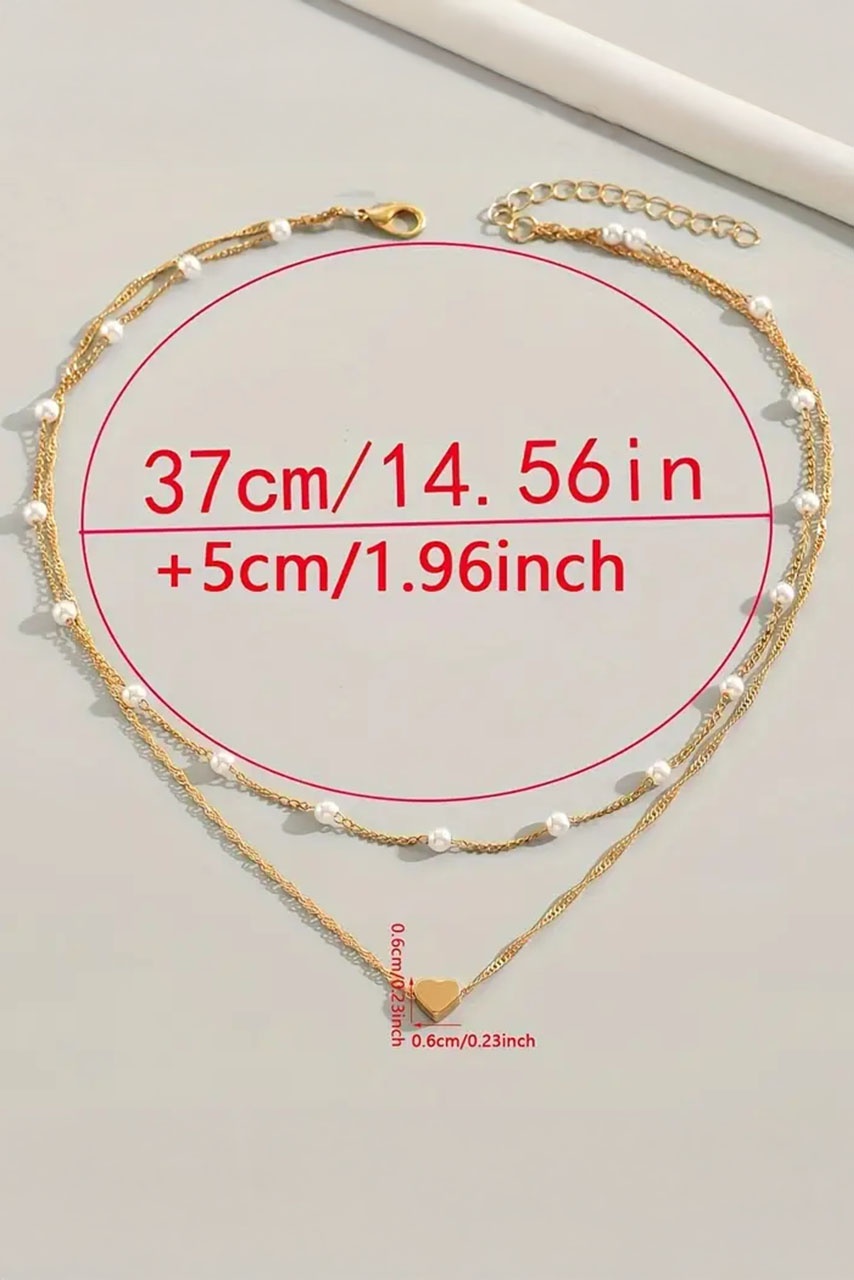 Golden 2 layers κολιέ με faux pearls και ένα κρεμαστό love heart. Το μήκος του προσαρμόζεται για τέλεια εφαρμογή, προσφέροντάς σας άνεση και στυλ.